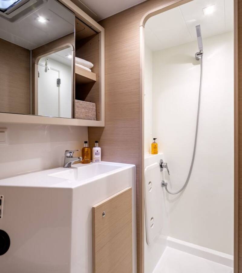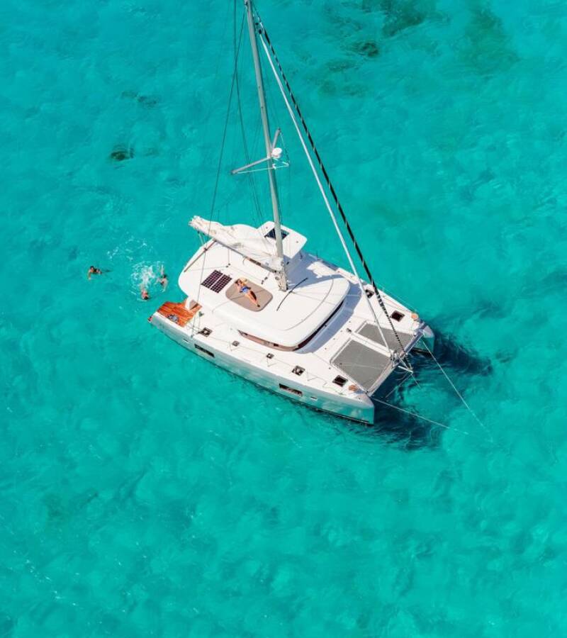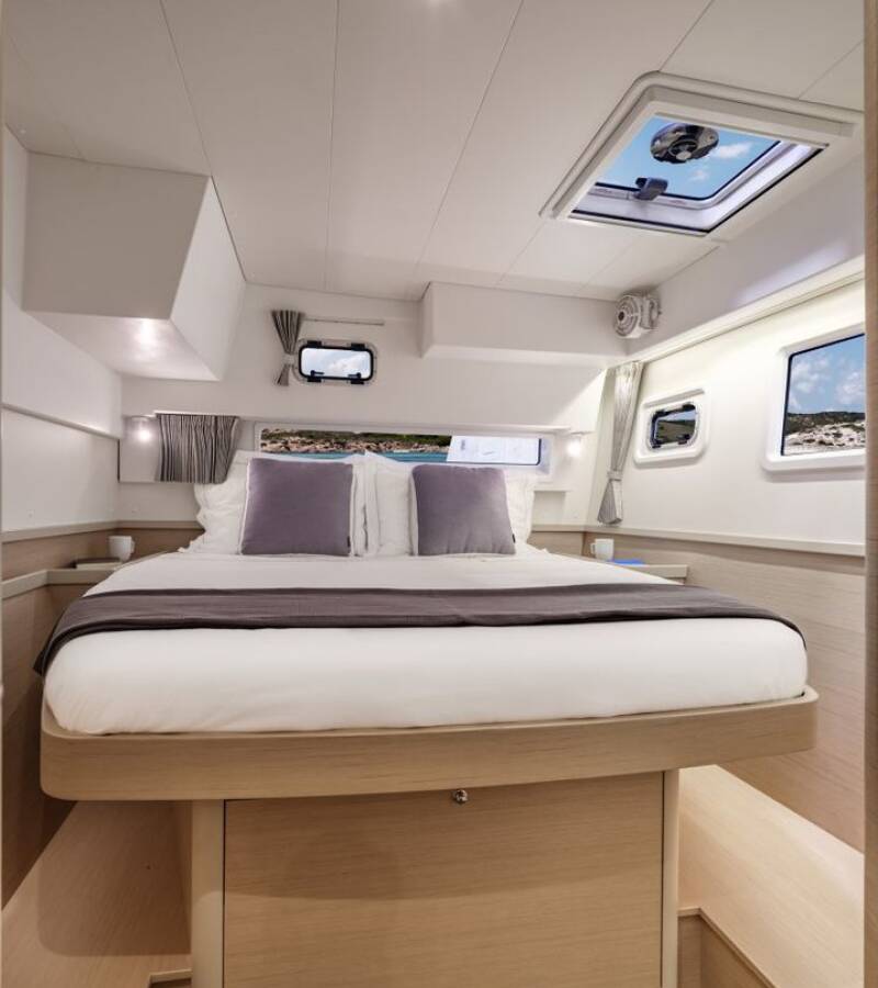 Die Lagoon 42 "Aventura" bietet besonderen Komfort mit folgenden Ausstattungsmerkmalen: Generator, Klimaanlage, Tiefkühlfach, Elektrische Toilette.