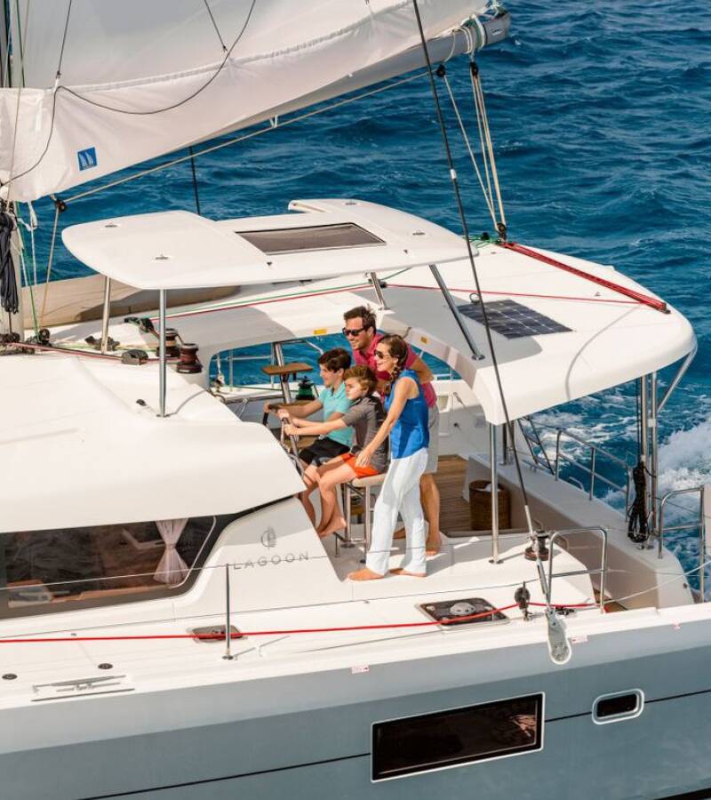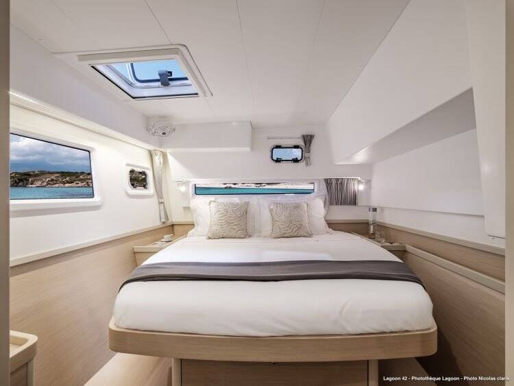 Die Lagoon 42 "Aventura" ist ausgestattet mit einem Großsegel und einem Genoa sowie einer Autopilot.