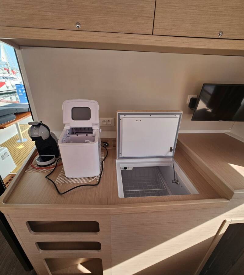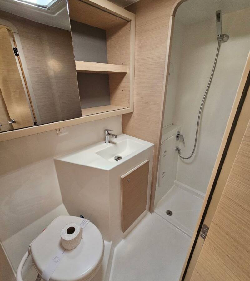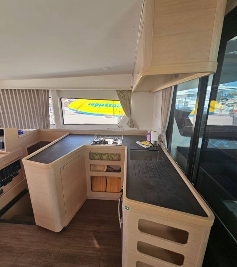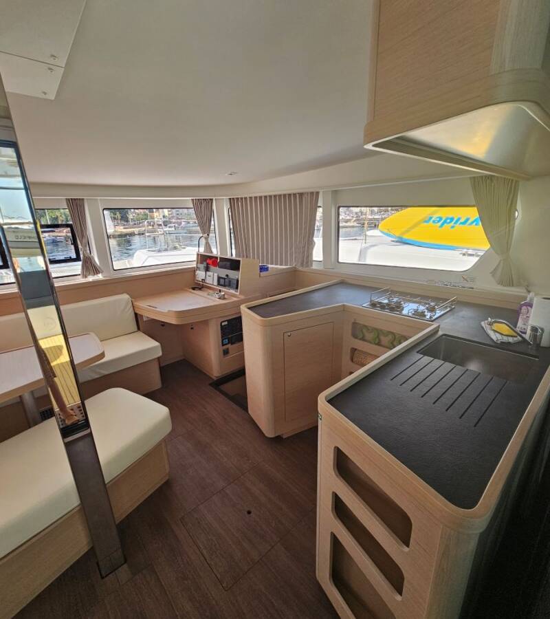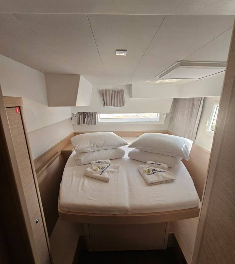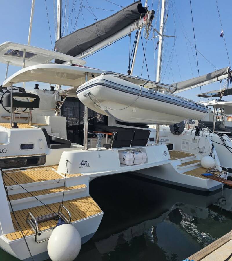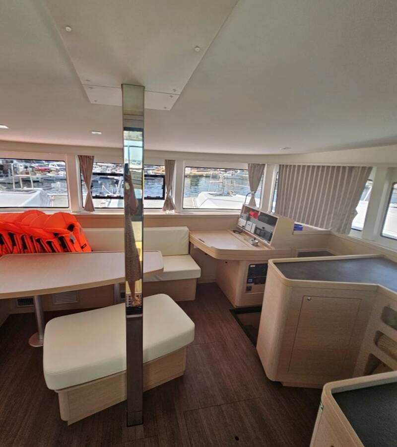 Die Lagoon 42 "Azzuro" ist ausgestattet mit einem Großsegel und einem Genoa sowie einer Autopilot, Heizung.