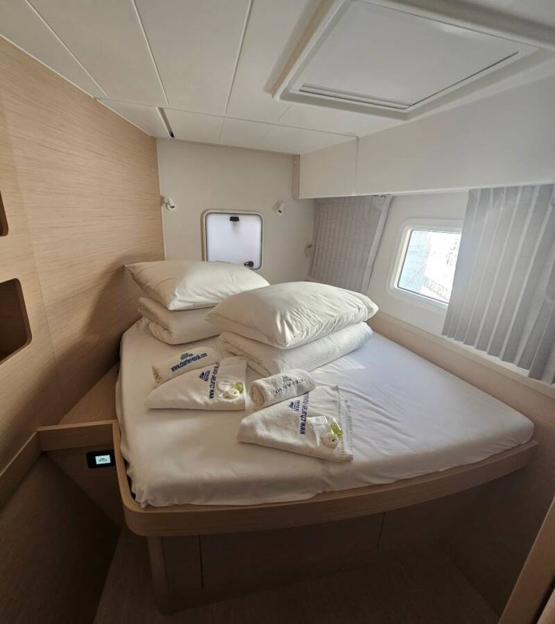 Die Lagoon 42 "Azzuro" bietet besonderen Komfort mit folgenden Ausstattungsmerkmalen: Generator, Klimaanlage, Inverter.