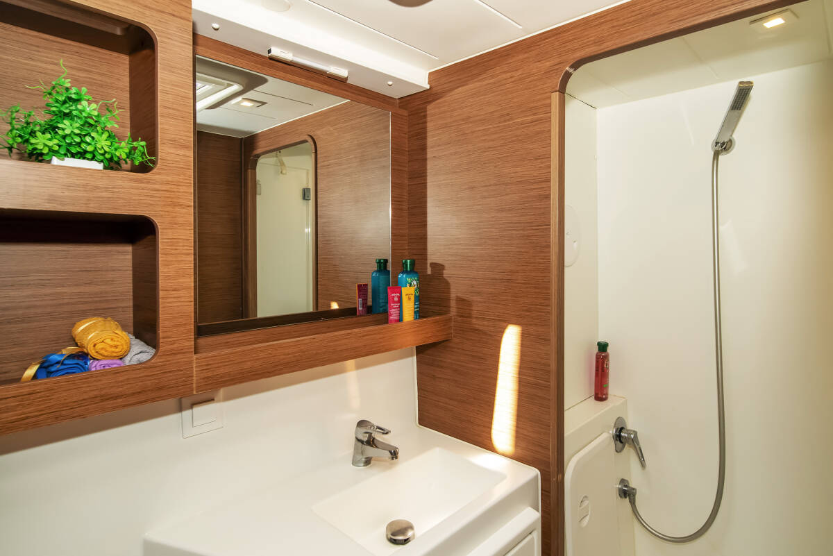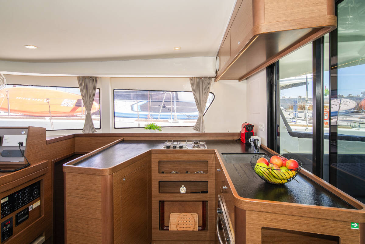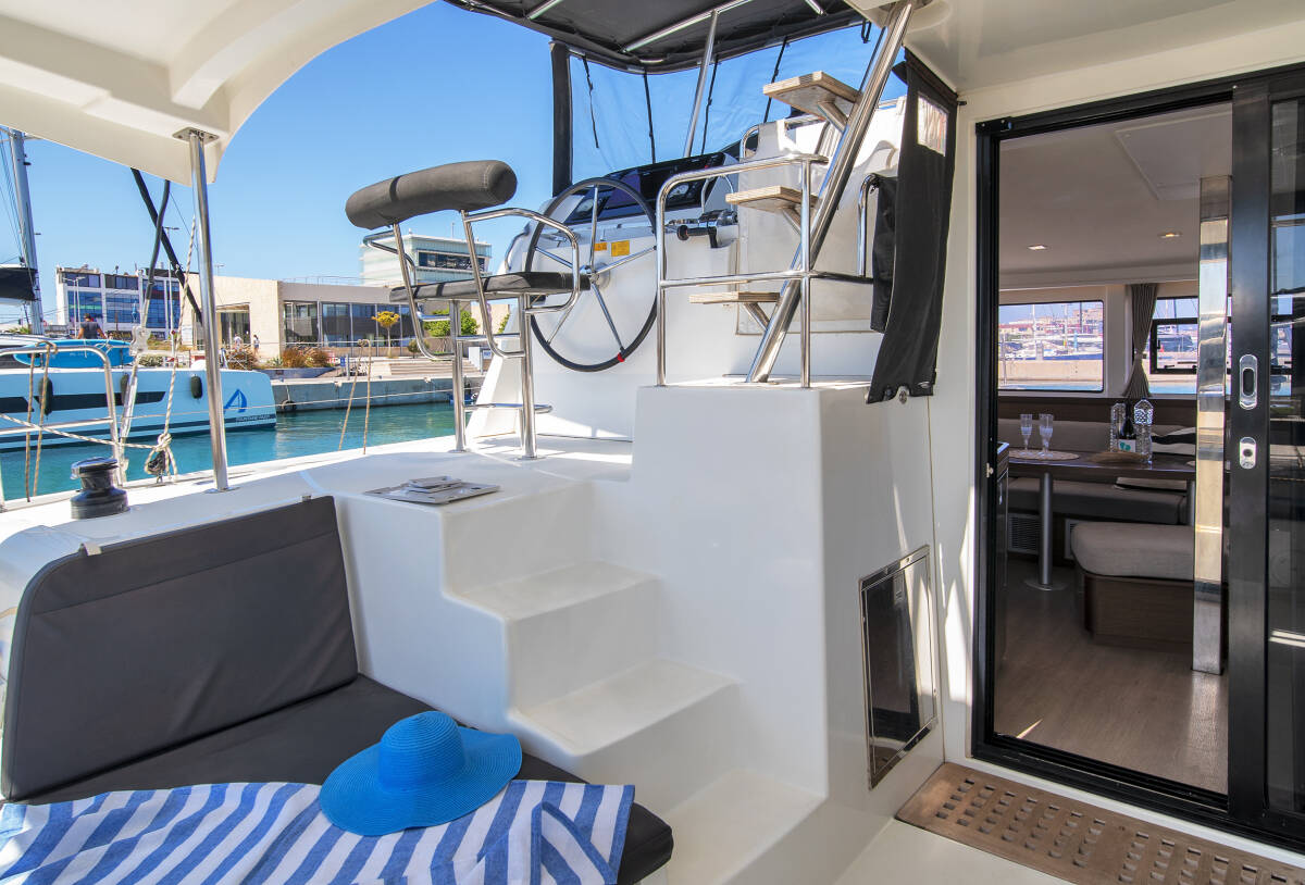 Die Lagoon 42 "Ionas" bietet besonderen Komfort mit folgenden Ausstattungsmerkmalen: Generator, Klimaanlage, Cockpit Kissen, Elektrische Toilette, Solar Panel.