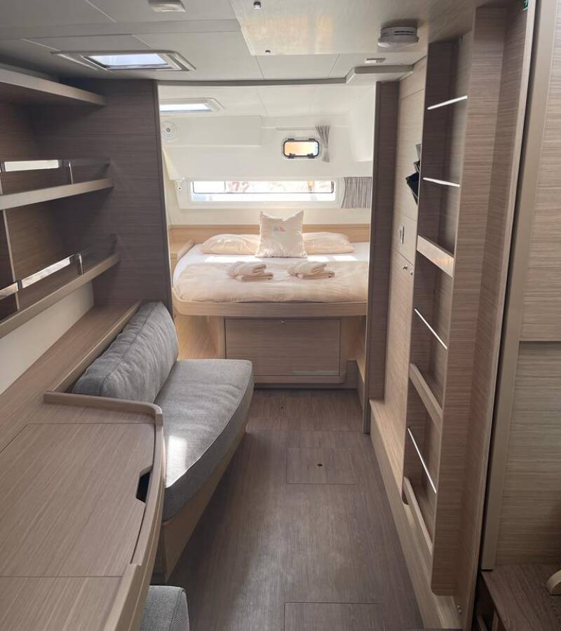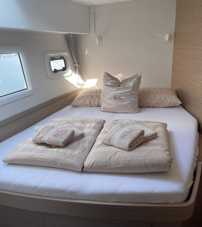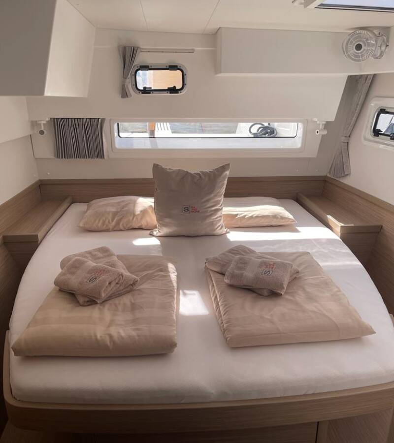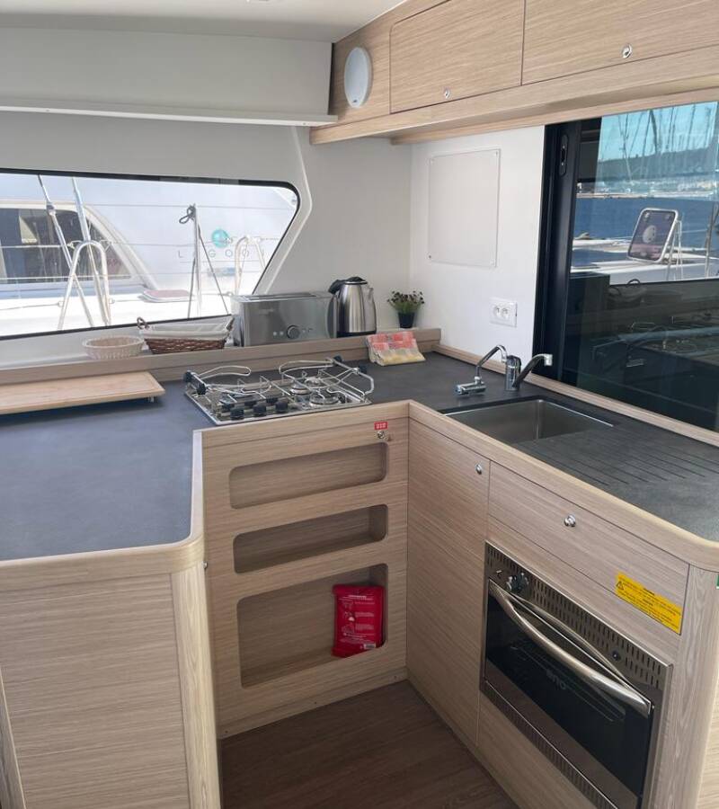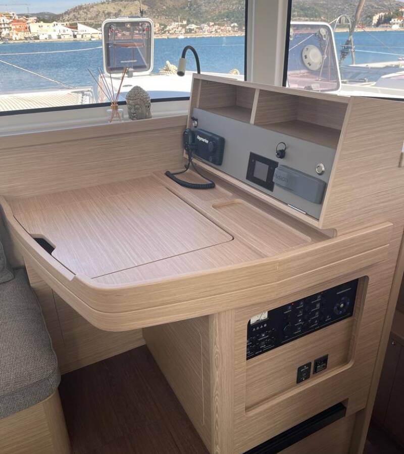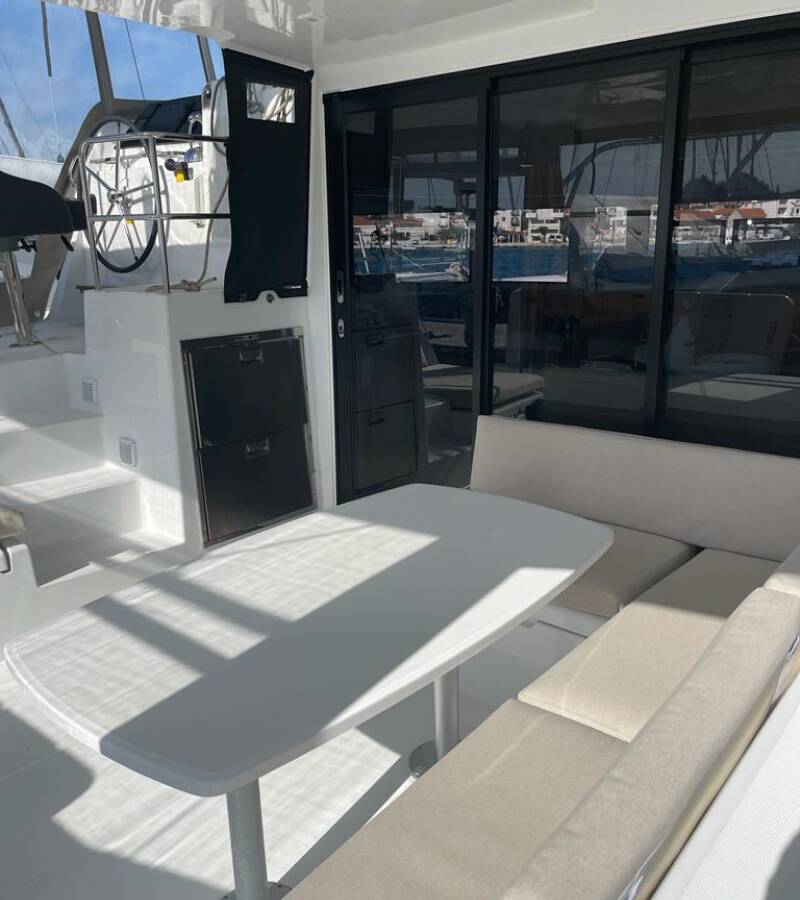 Die Lagoon 42 Millenium "Slowdown" bietet besonderen Komfort mit folgenden Ausstattungsmerkmalen: Generator, Klimaanlage, Cockpit Kissen, Inverter, Elektrische Toilette, Griller im Cockpit.