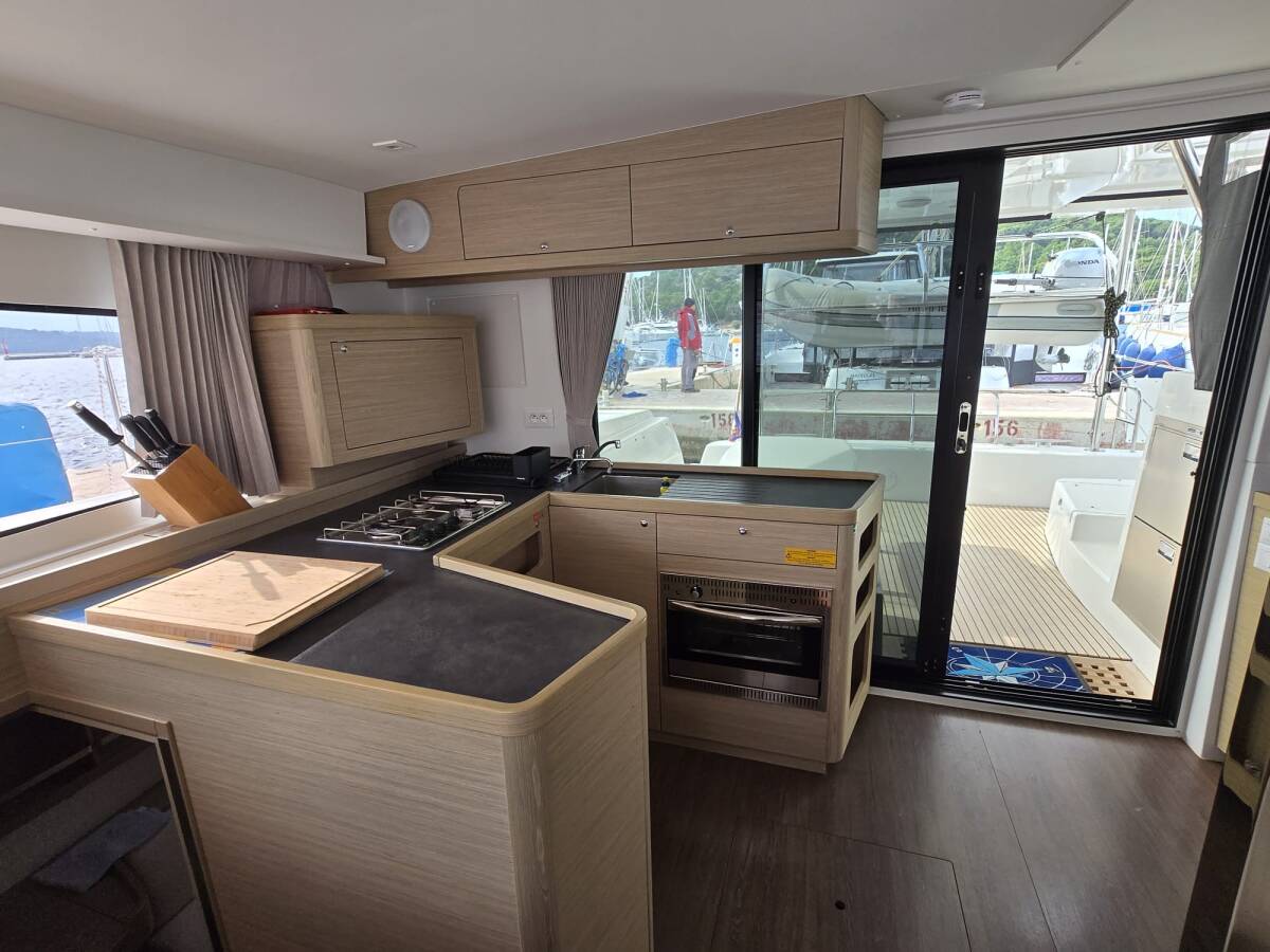 Die Lagoon 42 OW "Alina" bietet besonderen Komfort mit folgenden Ausstattungsmerkmalen: Klimaanlage, Cockpit Kissen, Inverter, Elektrische Toilette, Solar Panel.