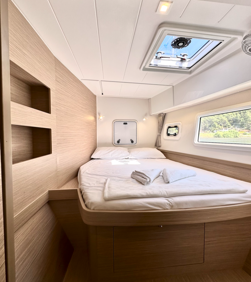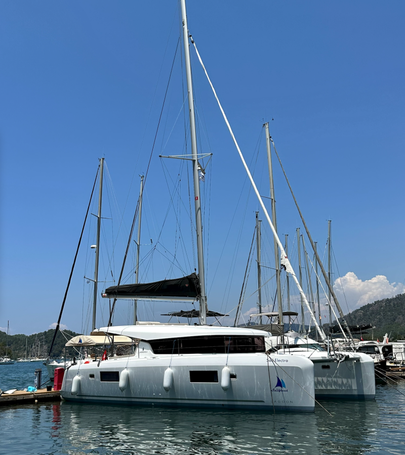 Die Lagoon 42 "Sail Electra" ist ausgestattet mit einem Großsegel und einem Genoa sowie einer Bimini Top, Autopilot.