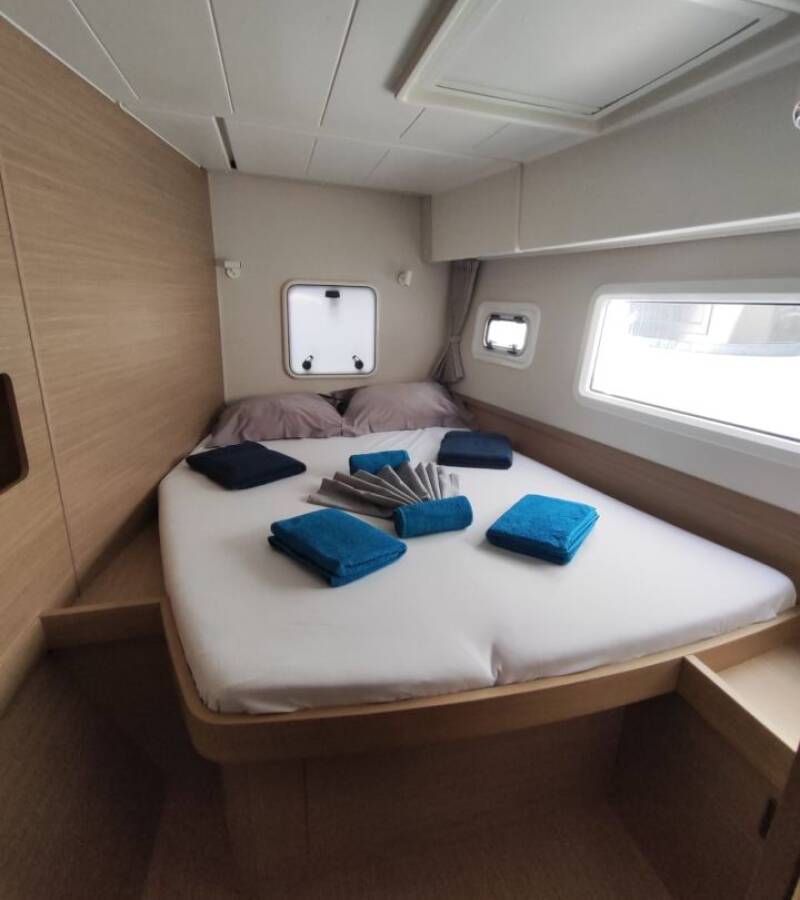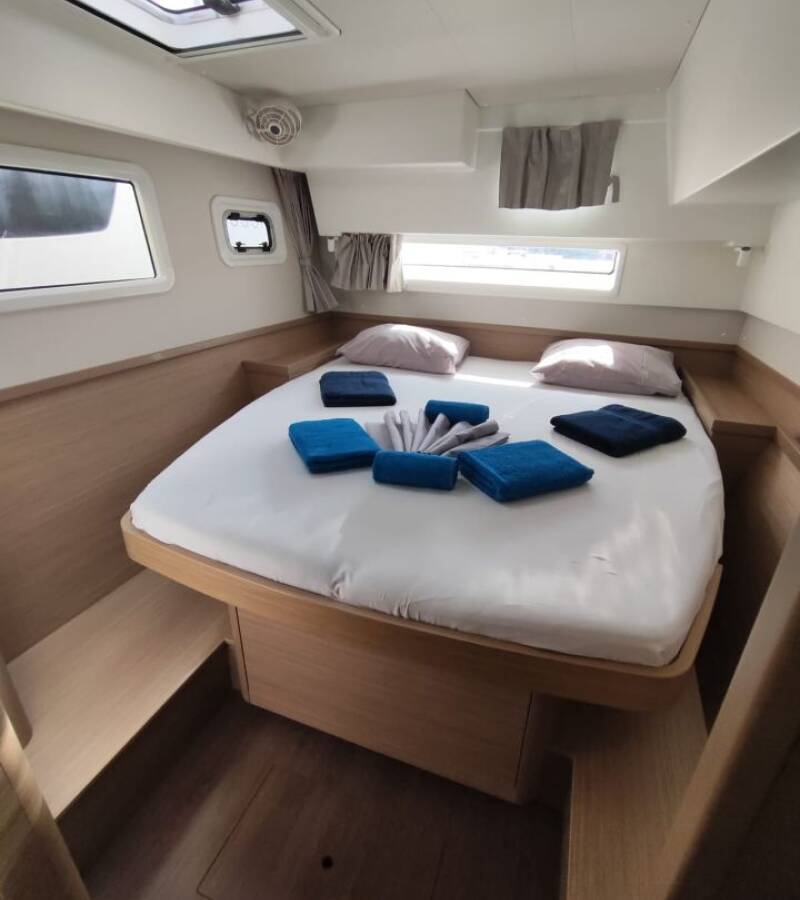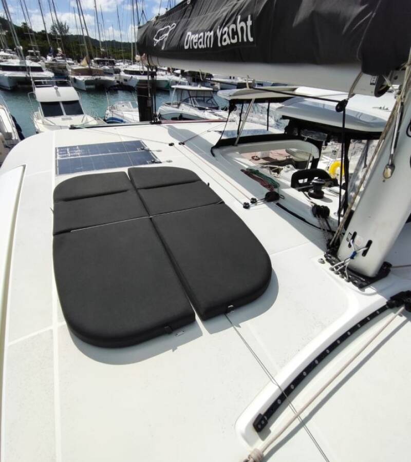 Die Lagoon 42 "VIOLET" bietet besonderen Komfort mit folgenden Ausstattungsmerkmalen: Generator, Klimaanlage, Cockpit Kissen, Inverter, Elektrische Toilette, Solar Panel.