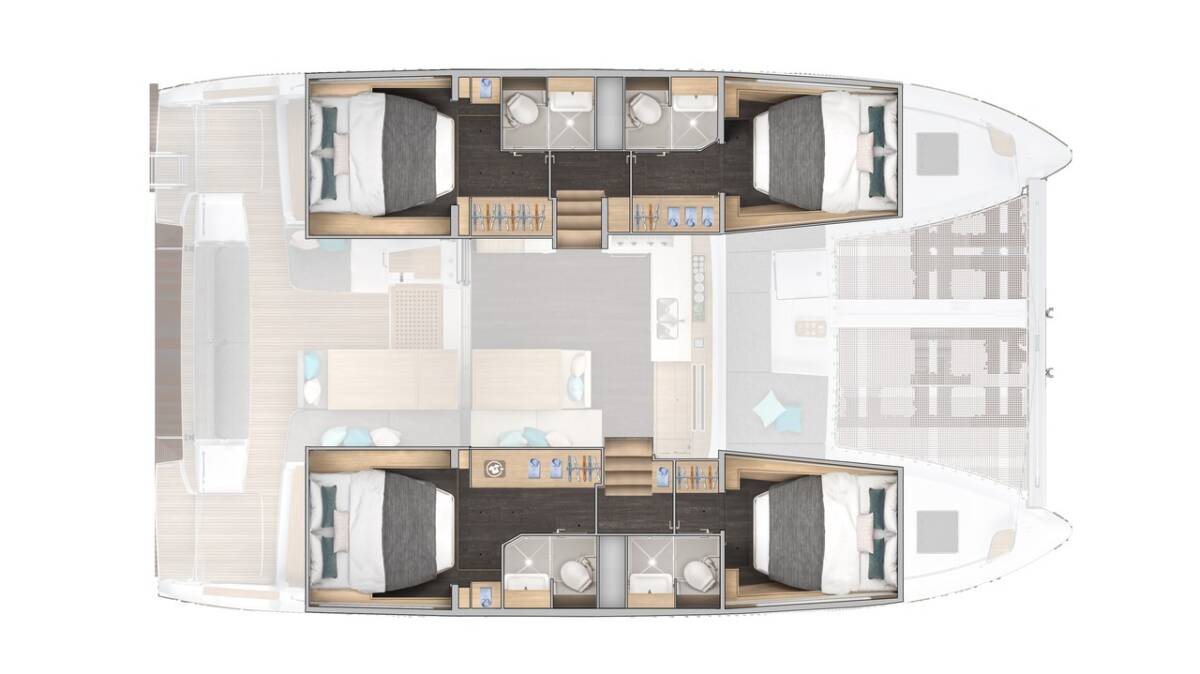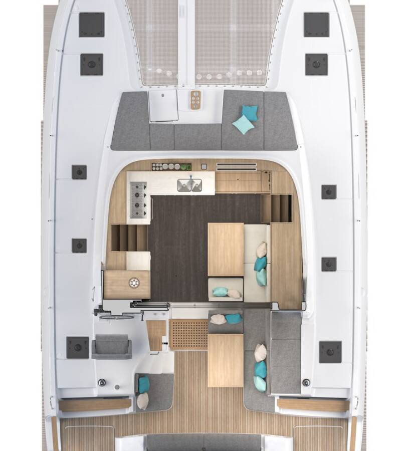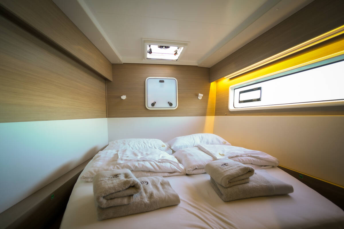 Die Lagoon 43 "Fox" bietet besonderen Komfort mit folgenden Ausstattungsmerkmalen: Generator, Klimaanlage, Tiefkühlfach, Elektrische Toilette.