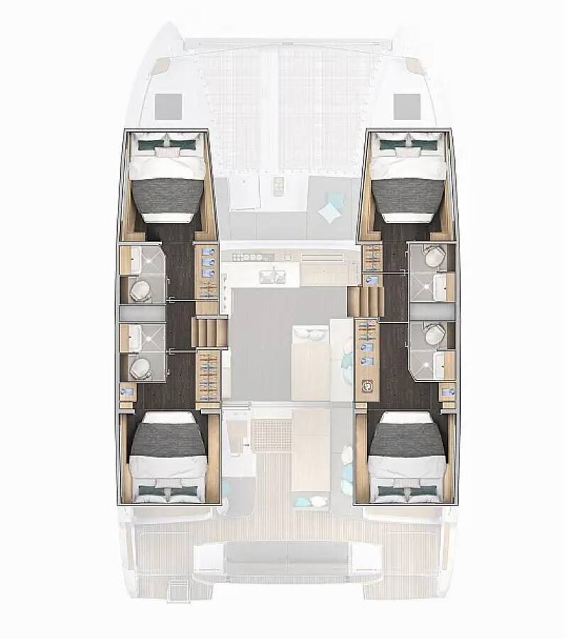 Die Lagoon 43 "Hashtag" bietet besonderen Komfort mit folgenden Ausstattungsmerkmalen: Generator, Klimaanlage, Cockpit Kissen, Inverter, Elektrische Toilette.