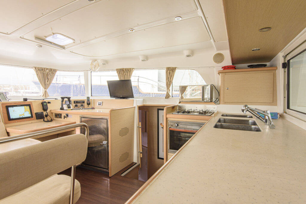 Die Lagoon 440 "Enjala" ist ausgestattet mit einem Großsegel und einem Genoa sowie einer Radar, Bimini Top, Autopilot, Sprayhood, Heizung, GPS Kartenplotter - Cockpit.