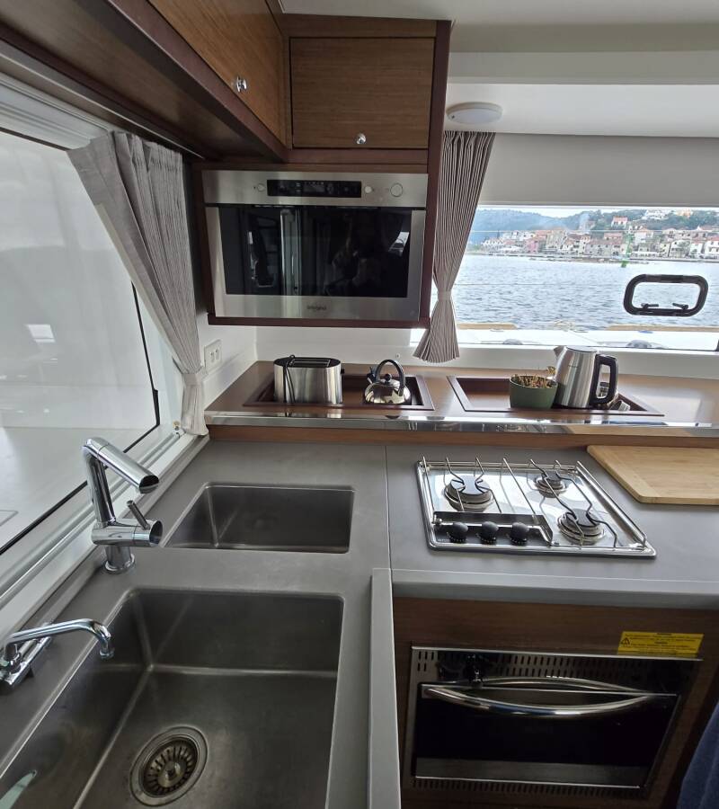 Die Lagoon 450 S "Elenya" bietet besonderen Komfort mit folgenden Ausstattungsmerkmalen: Klimaanlage, Cockpit Kissen, Inverter, Elektrische Toilette, Solar Panel.