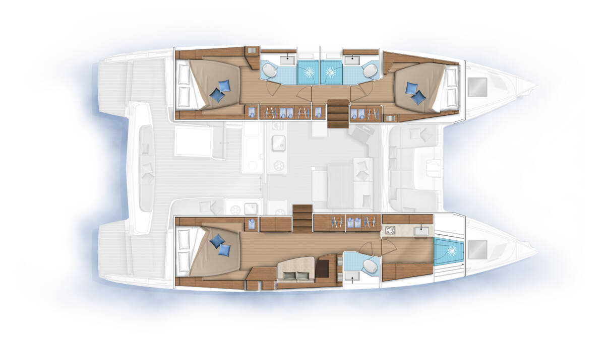 Die Lagoon 46 OW "Lodire" bietet besonderen Komfort mit folgenden Ausstattungsmerkmalen: Generator, Klimaanlage, Tiefkühlfach, Cockpit Kissen, Inverter, Elektrische Toilette.