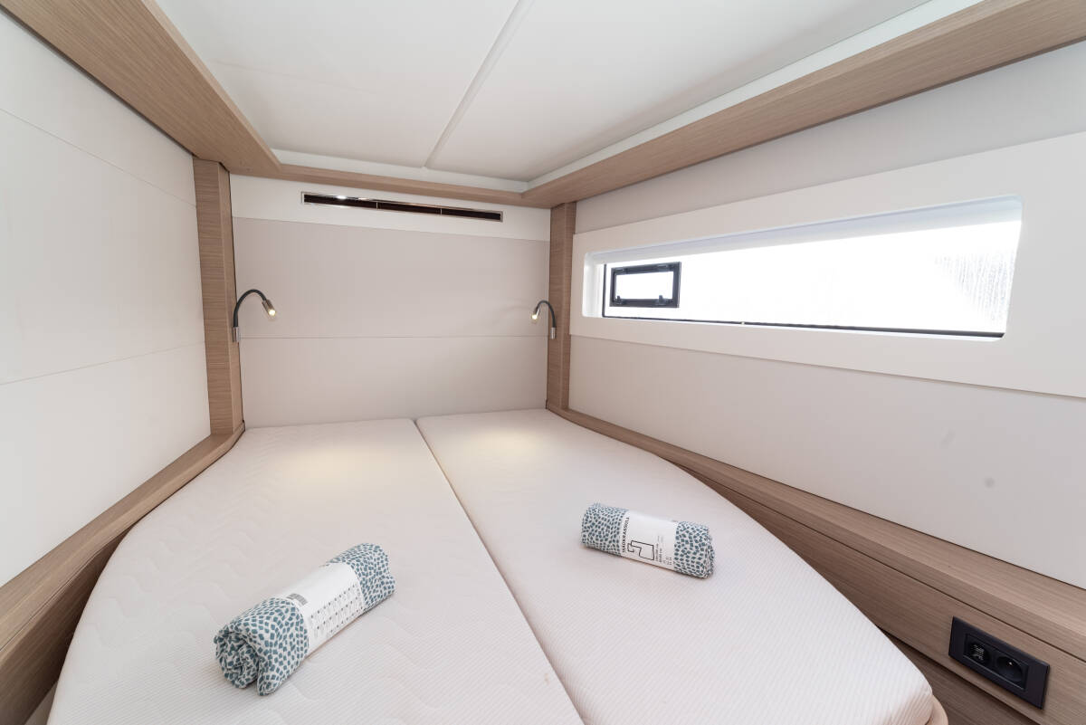 Die Katamaran Lagoon 46 "Spezielli", Baujahr 2024, liegt in Mallorca, Porto Colom - Spanien. Die Yacht verfügt über 4 + 2 Kabinen, bietet Platz für 8 + 2 + 2 Personen und hat 4 Toiletten/Duschen.