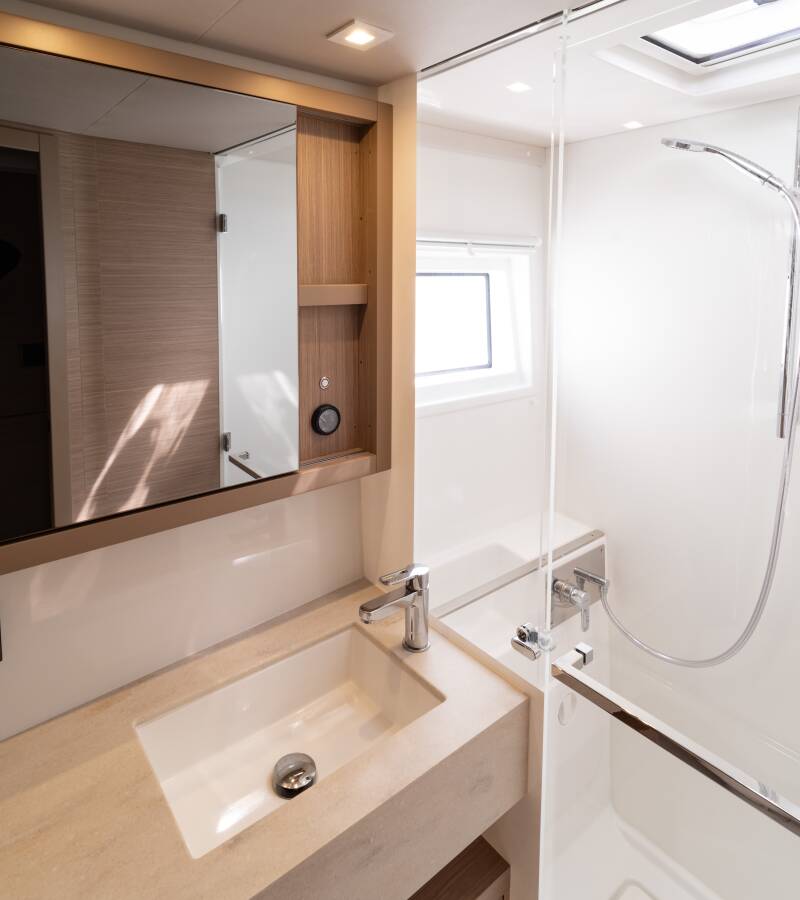 Die Lagoon 46 "Spezielli" bietet besonderen Komfort mit folgenden Ausstattungsmerkmalen: Generator, Klimaanlage, Tiefkühlfach, Cockpit Kissen, Inverter, Elektrische Toilette, Solar Panel.