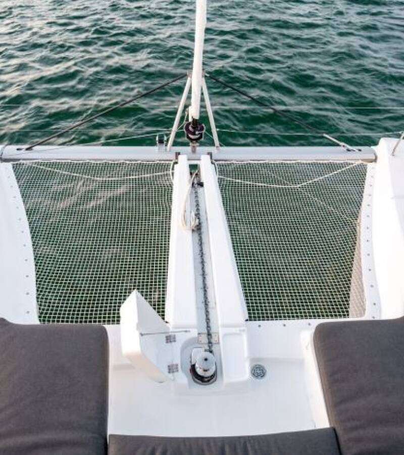 Die Lagoon 46 "VESPER" ist ausgestattet mit einem Großsegel und einem Genoa sowie einer Bimini Top, Autopilot.