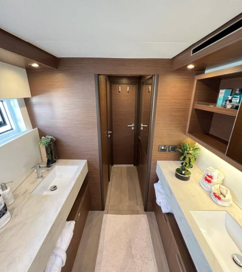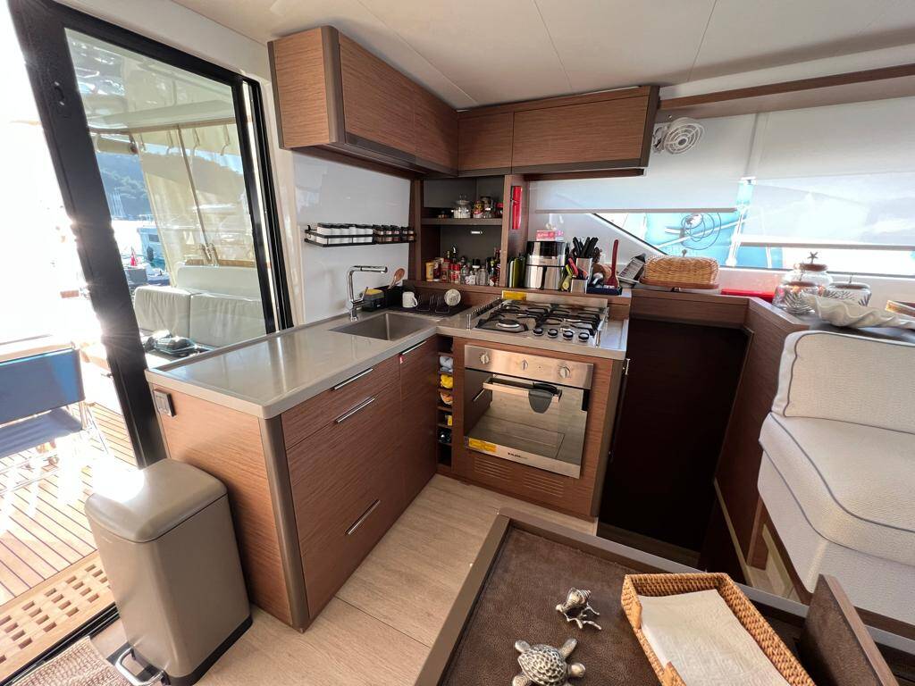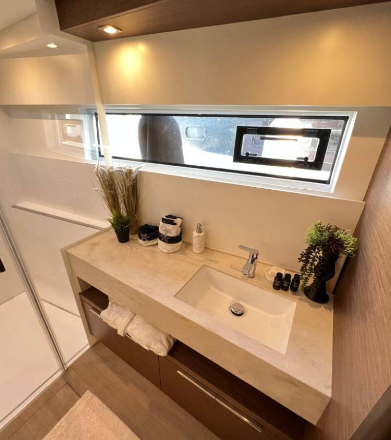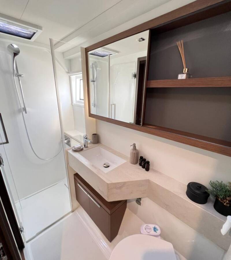 Die Lagoon 50 OW "Swice" bietet besonderen Komfort mit folgenden Ausstattungsmerkmalen: Bugstrahlruder, Generator, Klimaanlage, Tiefkühlfach, Inverter, Elektrische Toilette, Spülmaschine.