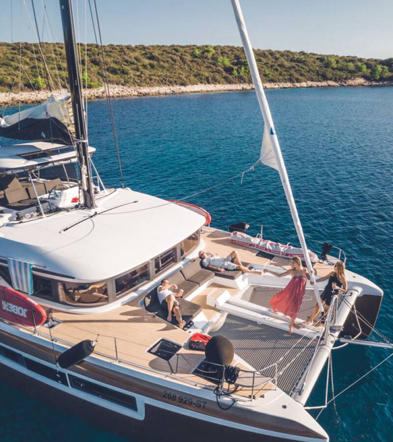 Die Lagoon 50 "Princess Kiss" bietet besonderen Komfort mit folgenden Ausstattungsmerkmalen: Bugstrahlruder, Generator, Klimaanlage, Tiefkühlfach, Cockpit Kissen, Inverter, Spülmaschine.