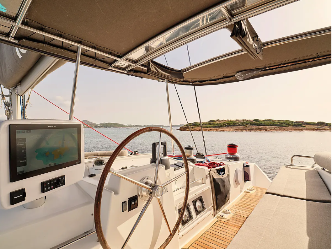 Die Lagoon 50 "Sophia" ist ausgestattet mit einem Großsegel und einem Genoa sowie einer Bimini Top, Autopilot.