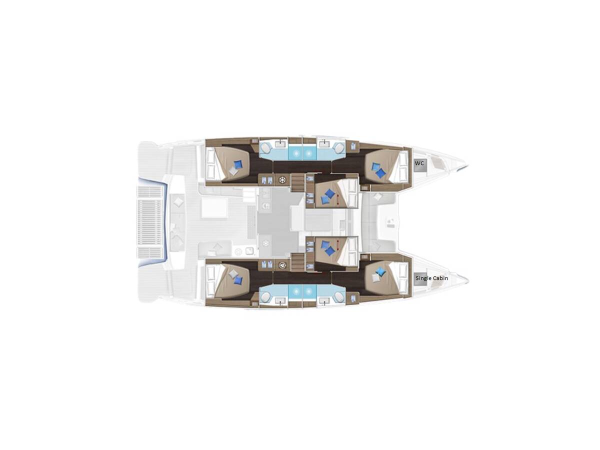 Die Lagoon 51 "Mythos" bietet besonderen Komfort mit folgenden Ausstattungsmerkmalen: Generator, Klimaanlage, Tiefkühlfach, Inverter, Elektrische Toilette, Spülmaschine, Solar Panel.
