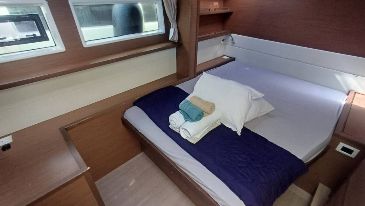 Die Lagoon 52 F "GREBE " bietet besonderen Komfort mit folgenden Ausstattungsmerkmalen: Generator, Klimaanlage, Tiefkühlfach, Cockpit Kissen, Inverter, Elektrische Toilette.