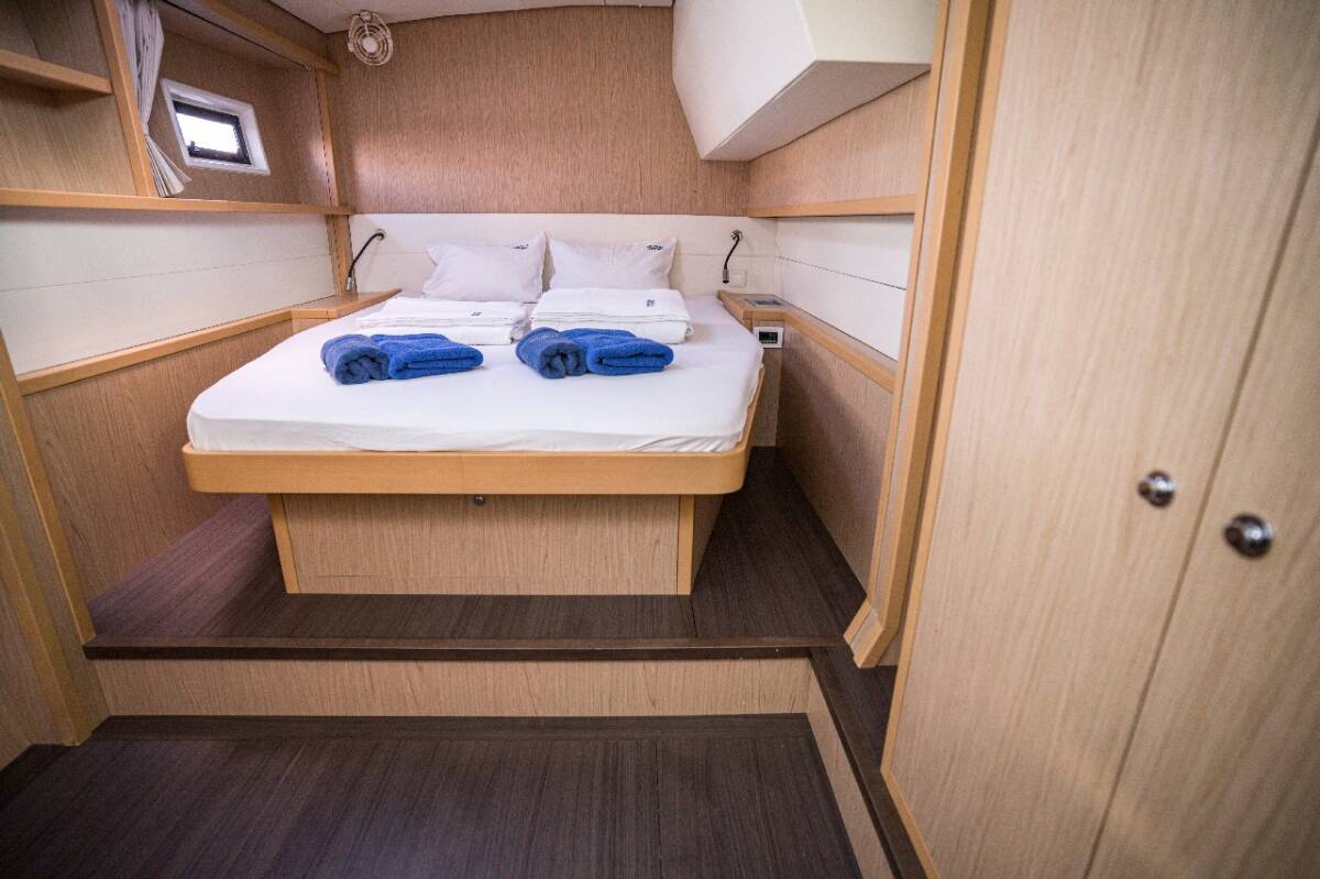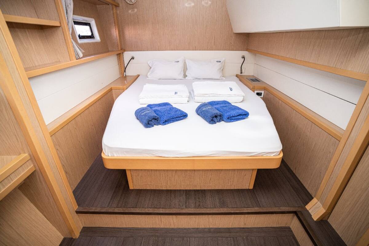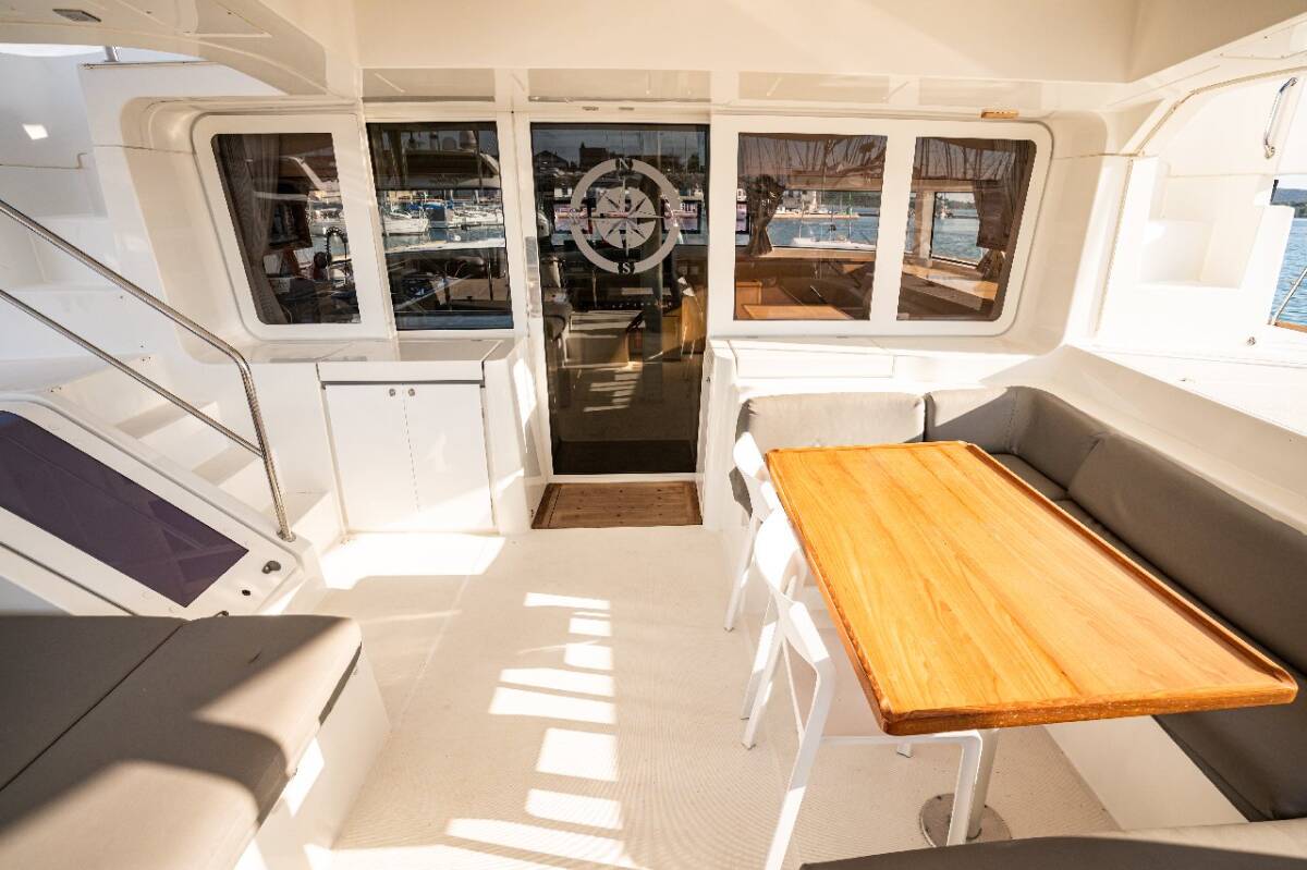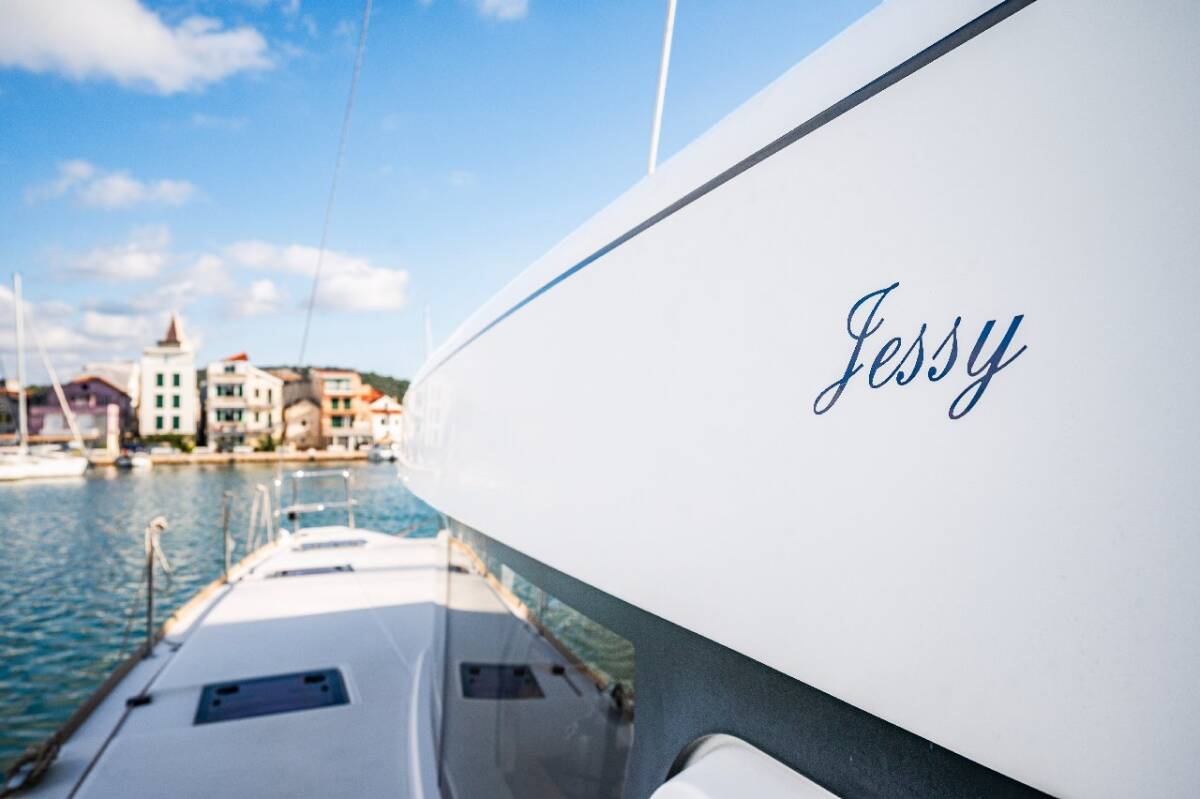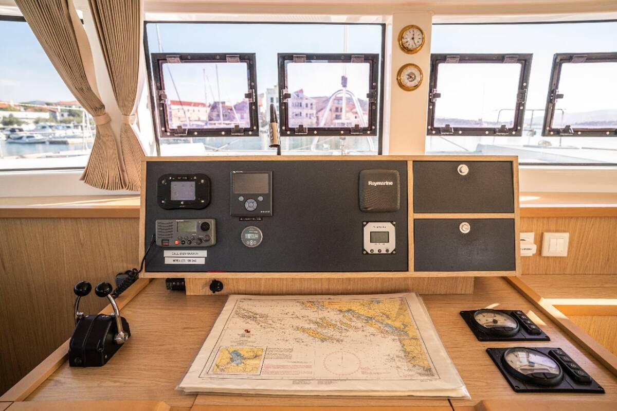 Die Lagoon 52 F "Jessy" ist ausgestattet mit einem Großsegel und einem Genoa sowie einer Autopilot.