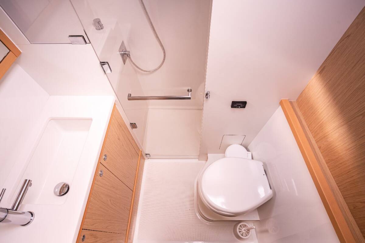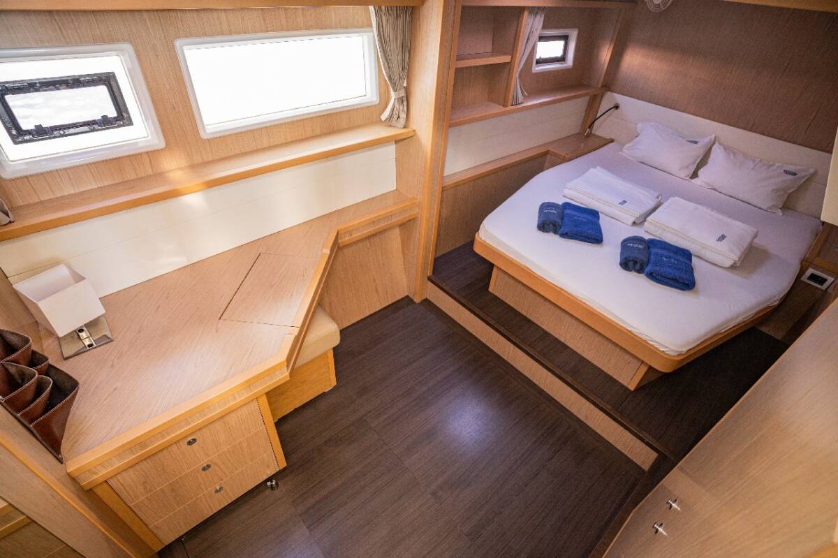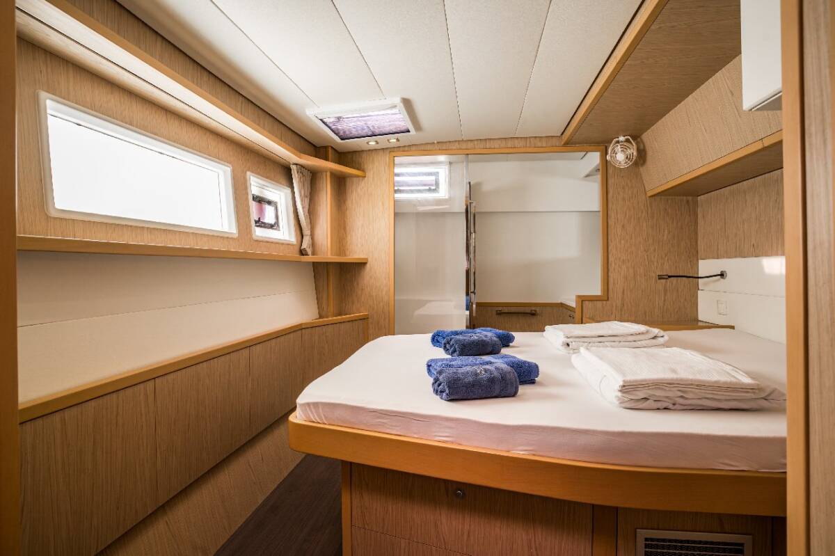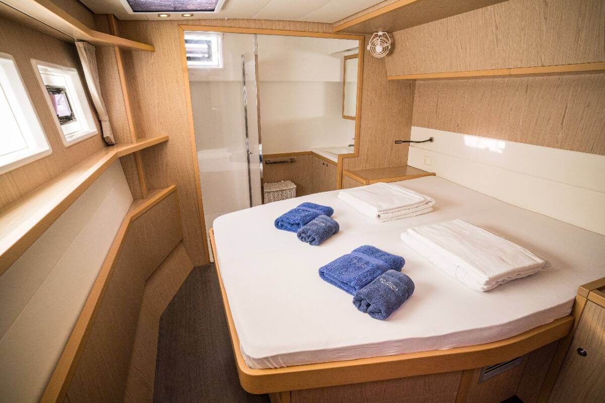 Die Lagoon 52 F "Jessy" bietet besonderen Komfort mit folgenden Ausstattungsmerkmalen: Generator, Klimaanlage, Tiefkühlfach, Waschmaschine, Badeplattform, Inverter, Elektrische Toilette, Spülmaschine, Solar Panel, Griller im Cockpit.