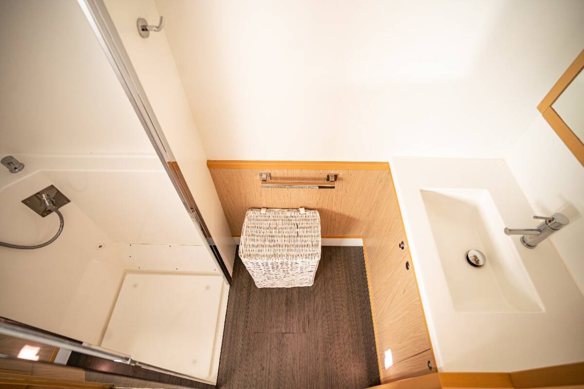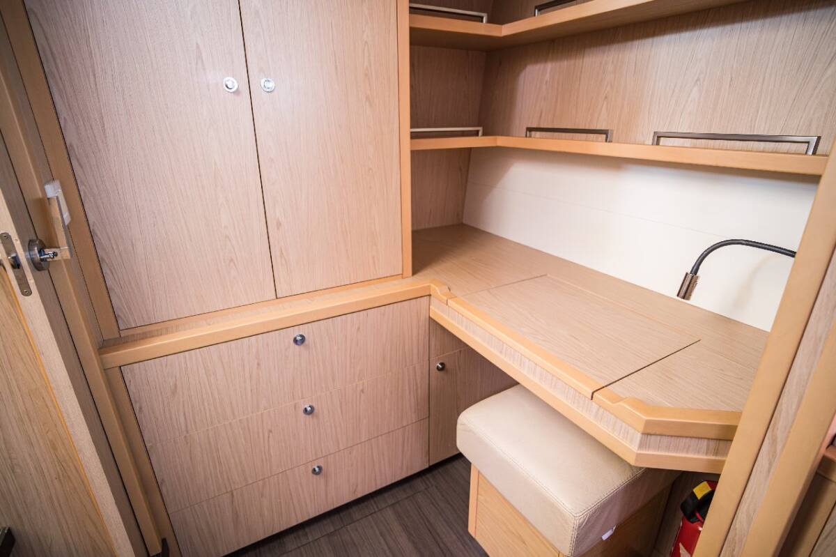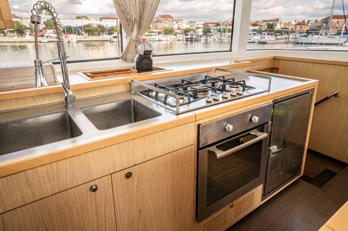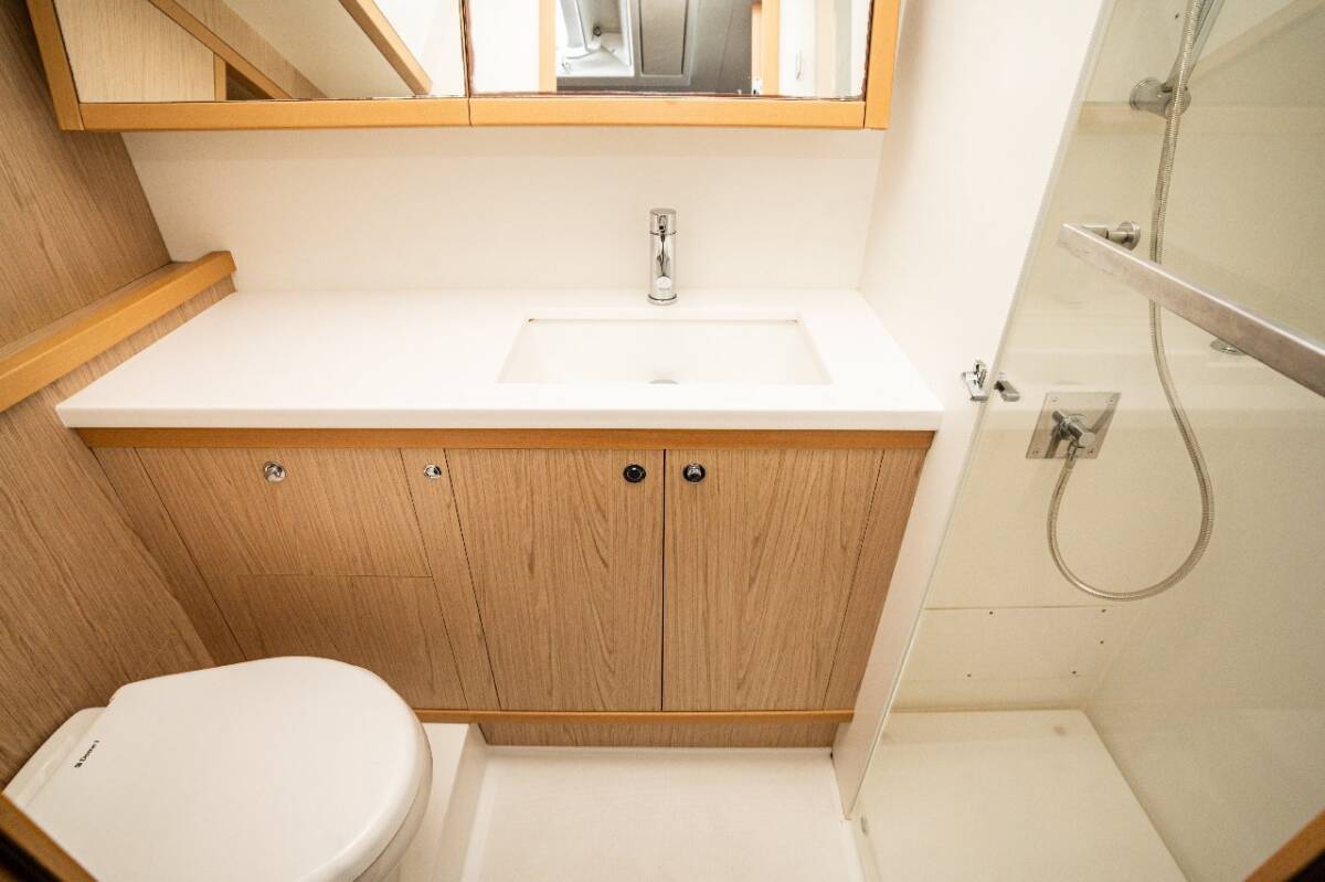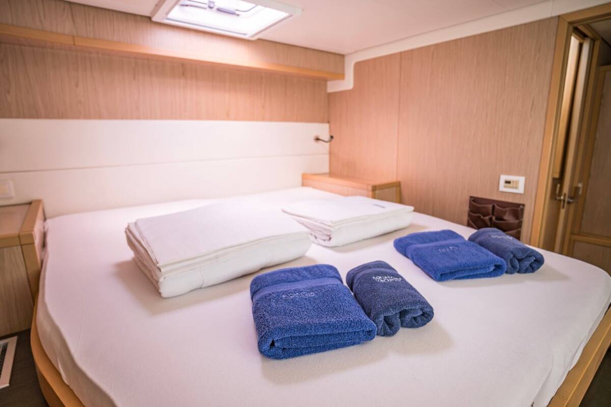 Die Lagoon 52 F "Jessy" bietet besonderen Komfort mit folgenden Ausstattungsmerkmalen: Generator, Klimaanlage, Tiefkühlfach, Waschmaschine, Badeplattform, Inverter, Elektrische Toilette, Spülmaschine, Solar Panel, Griller im Cockpit.