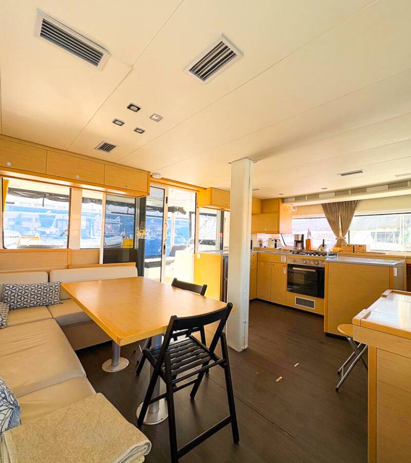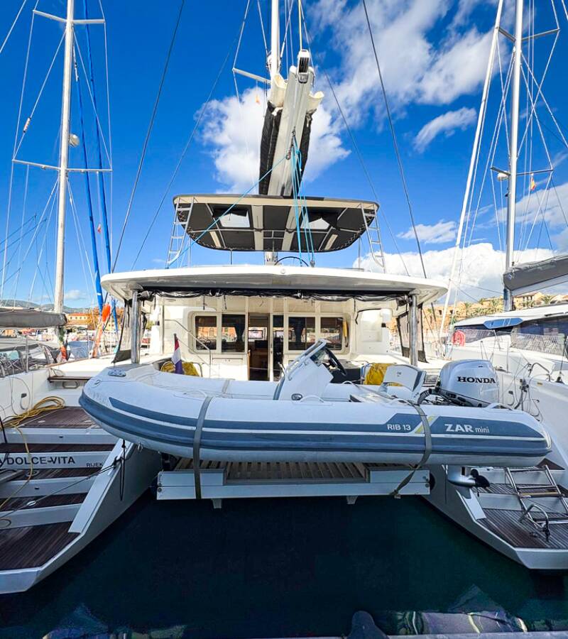 Die Lagoon 52 F "La Dolce Vita" bietet besonderen Komfort mit folgenden Ausstattungsmerkmalen: Bugstrahlruder, Generator, Klimaanlage, Tiefkühlfach, Inverter, Elektrische Toilette, Spülmaschine.