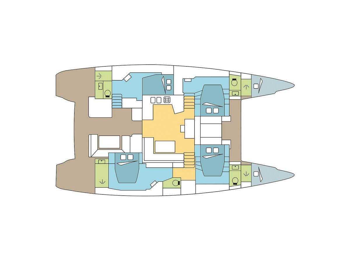 Die Katamaran Lagoon 52 F "Madinina", Baujahr 2021, liegt in Lavrion - Olympic Marine - Griechenland . Die Yacht verfügt über 4 + 2 Kabinen, bietet Platz für 8 + 3 Personen und hat 4 Toiletten/Duschen.