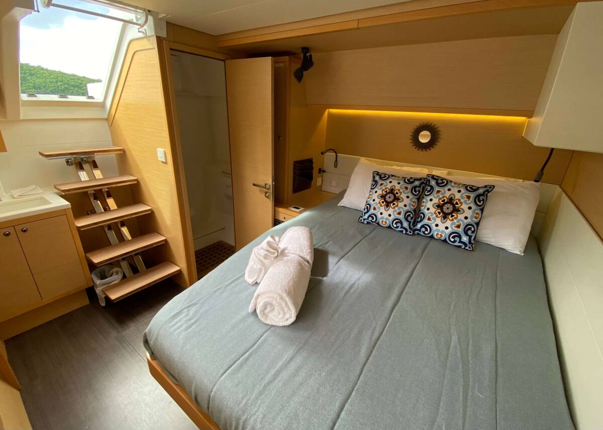 Die Lagoon 52 "Ventana Al Mar" bietet besonderen Komfort mit folgenden Ausstattungsmerkmalen: Generator, Klimaanlage, Badeplattform, Inverter, Elektrische Toilette, Solar Panel.