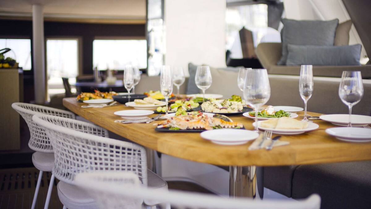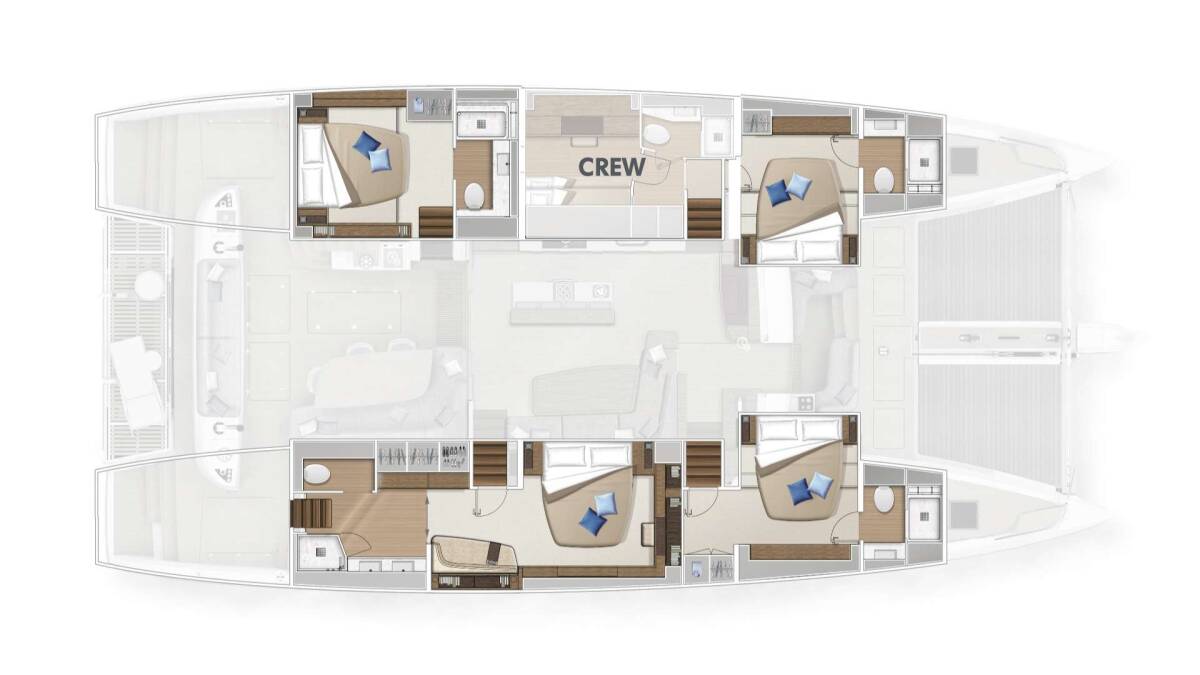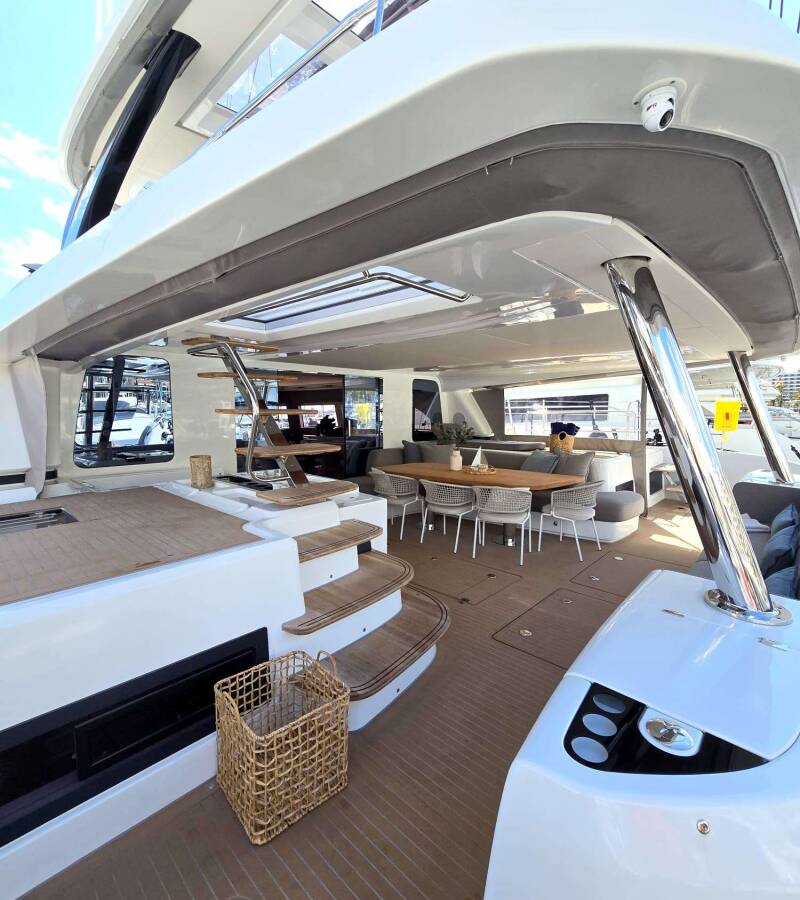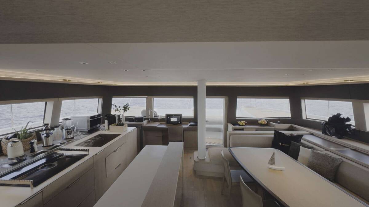 Die Lagoon Sixty 5 "TriWing Endor" bietet besonderen Komfort mit folgenden Ausstattungsmerkmalen: Bugstrahlruder, Generator, Klimaanlage, Tiefkühlfach, Waschmaschine, Inverter, Elektrische Toilette, Spülmaschine, Solar Panel, Griller im Cockpit.
