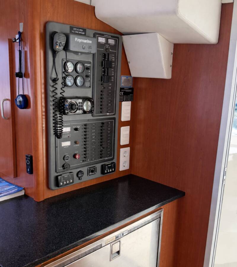 Die Leopard 44 "Portals Vells" bietet besonderen Komfort mit folgenden Ausstattungsmerkmalen: Generator, Klimaanlage, Tiefkühlfach, Elektrische Toilette, Solar Panel.