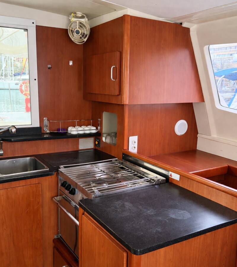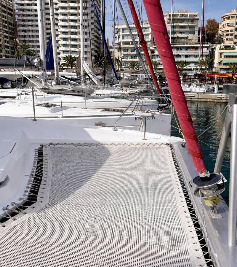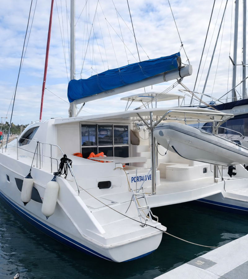 The Leopard 44 PORTALS VELLS (built in 2012) is based in Palma de Mallorca and offers a spacious and comfortable catamaran layout, ideal for cruising around the Balearic Islands. At the front, the catamaran features a foredeck terrace – a calm, sun-sheltered spot to enjoy your first coffee in the morning. The yacht offers 4 cabins with en-suite bathrooms and accommodates up to 8+2 guests, thanks to 2 additional sleeping berths in the saloon. This makes her well suited for families or groups of friends. Key specifications and equipment include: – Full battened mainsail & furling genoa – Autopilot & GPS – Generator & air conditioning – Solar panels – Electric anchor windlass – Cockpit table & outdoor cushions – Bluetooth sound system – Dinghy Why this yacht is suitable for your clients – Spacious and stable catamaran with generous living areas – Ideal for families and groups (up to 8+2 guests) – Additional sleeping capacity thanks to saloon berths – Well equipped for longer stays thanks to generator and solar panels – Comfortable onboard climate with air conditioning and heating – Convenient base in Palma de Mallorca for exploring the Balearic Islands