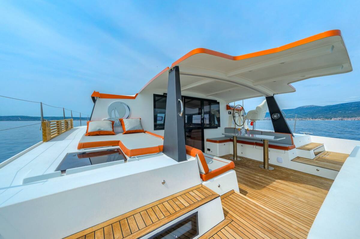Die Luna 47 Power "Orange" ist ausgestattet mit einer Autopilot, Heizung, Teak im Cockpit, GPS Kartenplotter - Cockpit.