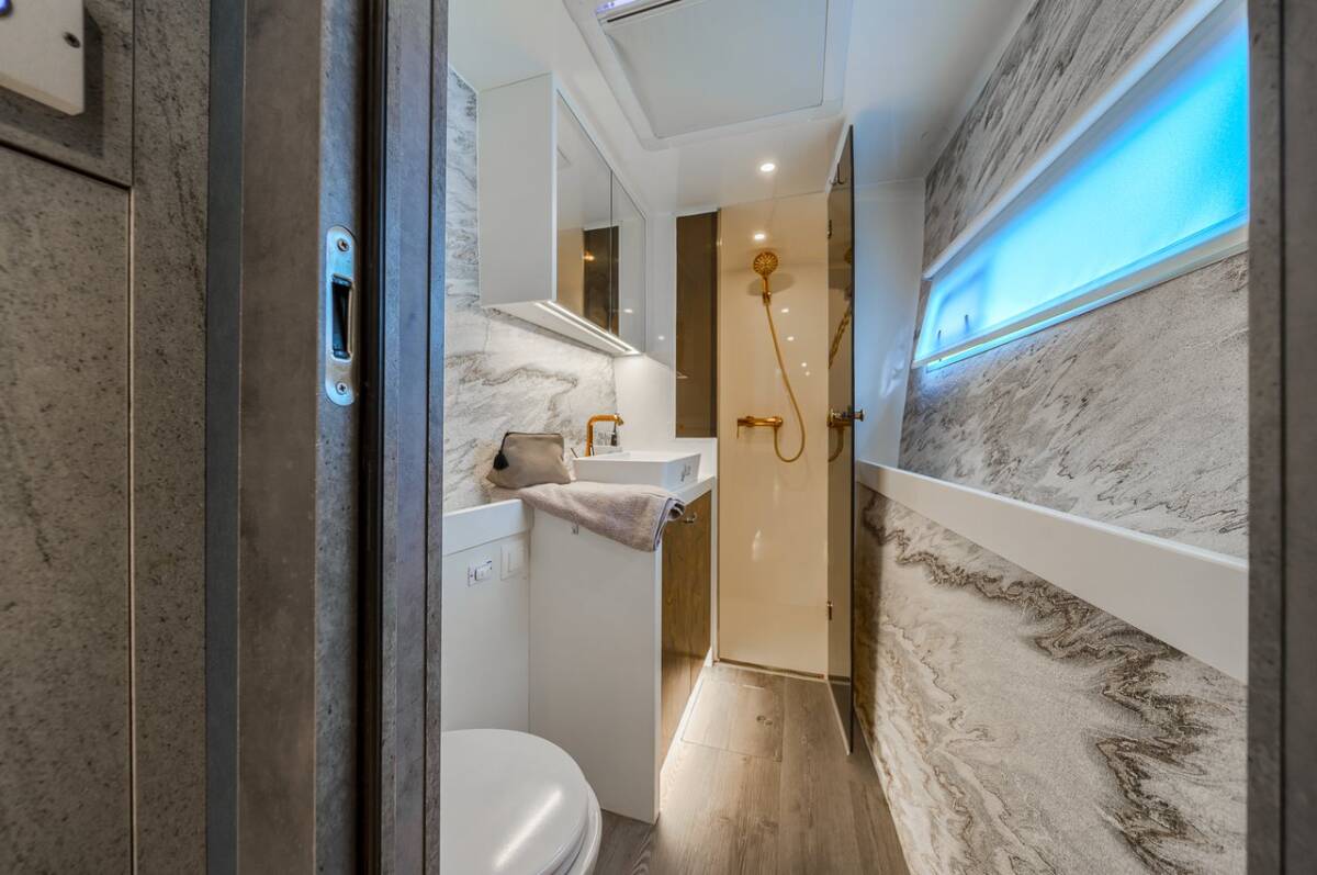 Die Luna 47 Power "Orange" bietet besonderen Komfort mit folgenden Ausstattungsmerkmalen: Generator, Klimaanlage, Inverter, Elektrische Toilette.