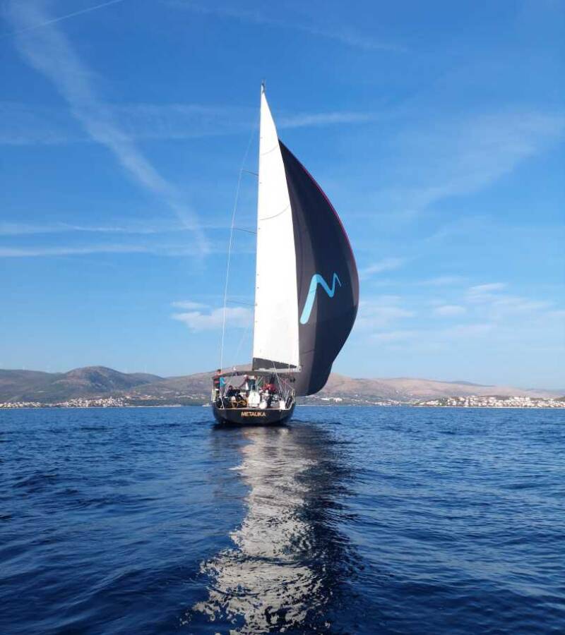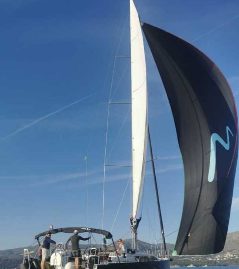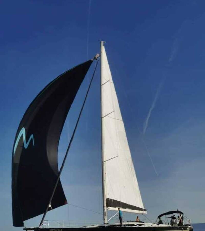 Die More 55 "Metalika" ist ausgestattet mit einem Großsegel und einem Genoa sowie einer Bimini Top, Autopilot, Sprayhood, Teak im Cockpit.