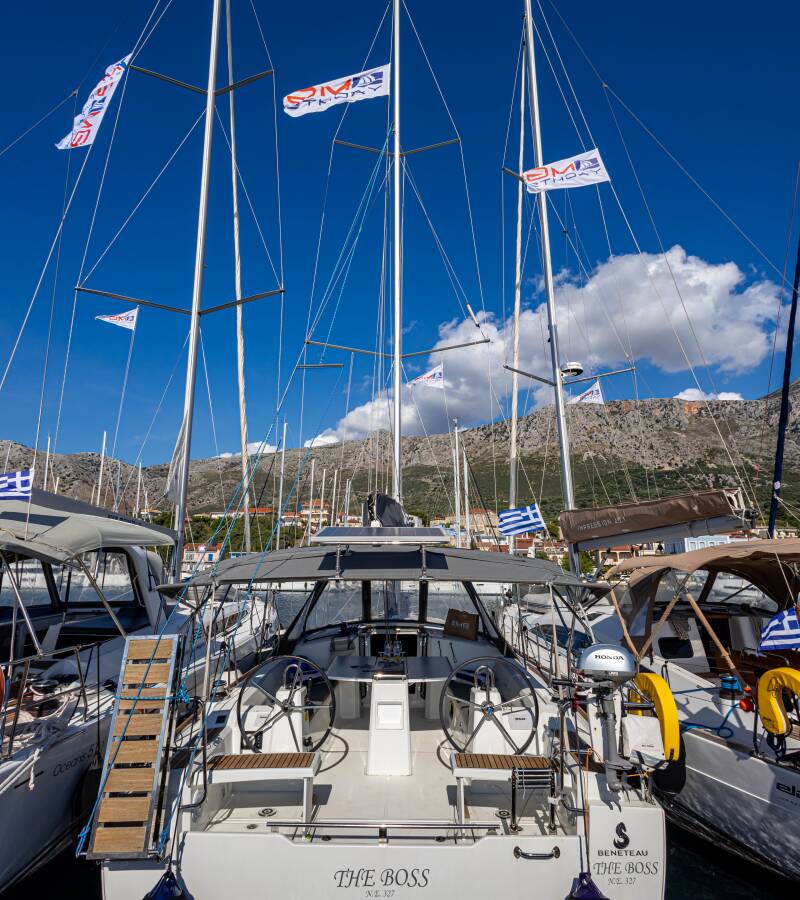 Die Oceanis 38.1 "The Boss" ist ausgestattet mit einem Großsegel und einem Genoa sowie einer GPS Kartenplotter - Cockpit.