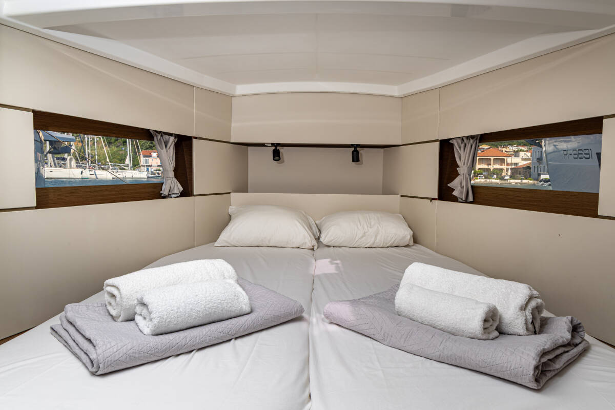 Die Oceanis 38.1 "The Boss" bietet besonderen Komfort mit folgenden Ausstattungsmerkmalen: Bugstrahlruder, Badeplattform, Elektrische Toilette, Solar Panel.