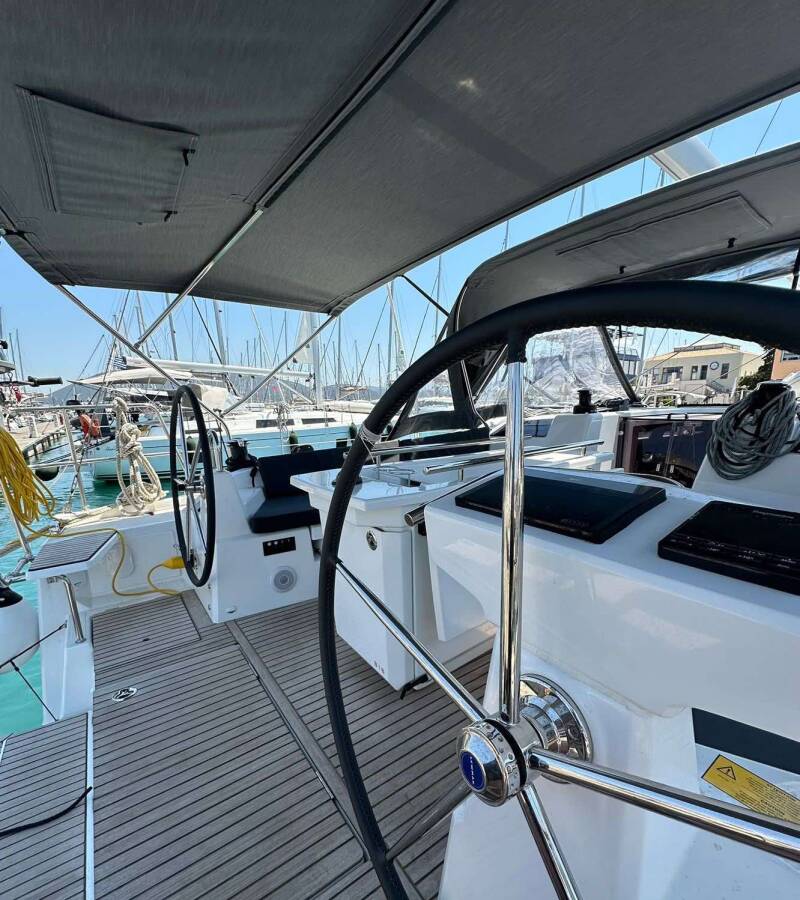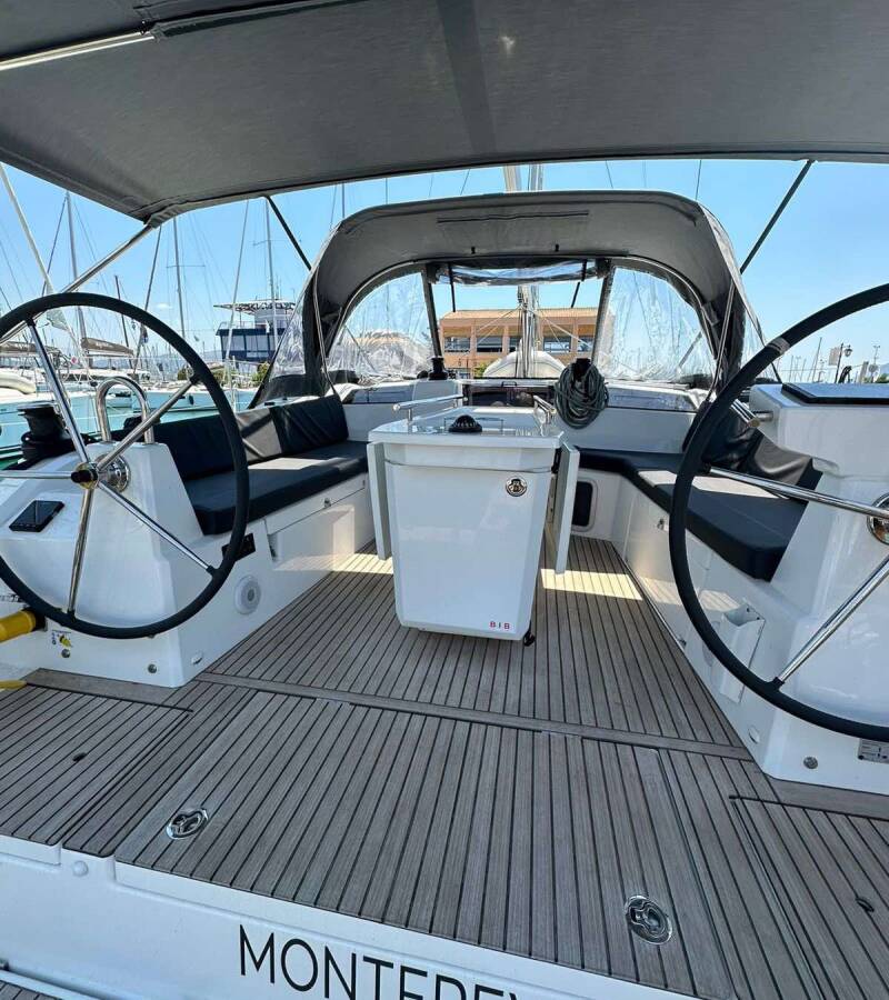 Die Oceanis 40.1 "Monterey" ist ausgestattet mit einem Großsegel und einem Genoa sowie einer Bimini Top, Autopilot, Sprayhood, Teak im Cockpit, GPS Kartenplotter - Cockpit.