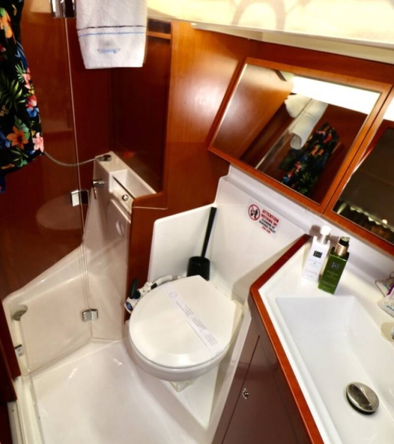 Die Oceanis 41.1 "Mala Nevina" bietet besonderen Komfort mit folgenden Ausstattungsmerkmalen: Bugstrahlruder, Cockpit Kissen, Solar Panel.