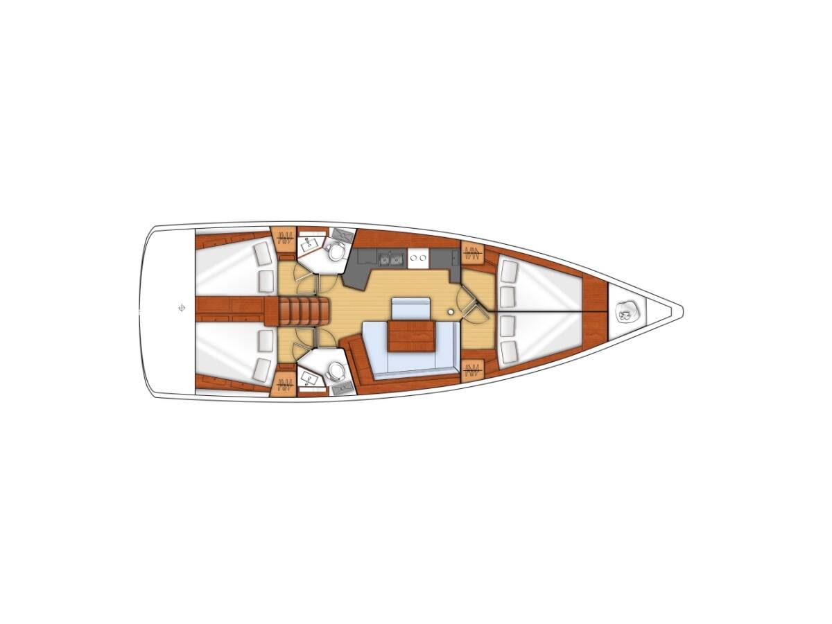 Die Oceanis 45 "Golden Dreams" ist ausgestattet mit einem Großsegel und einem Genoa sowie einer Bimini Top, Autopilot, Sprayhood, GPS Kartenplotter - Cockpit.