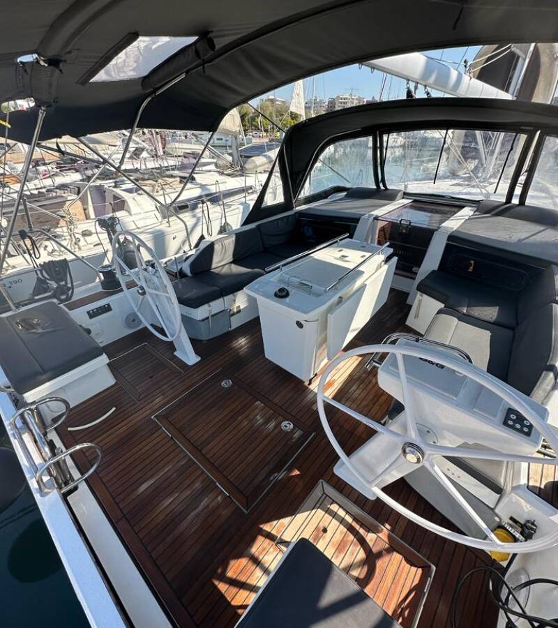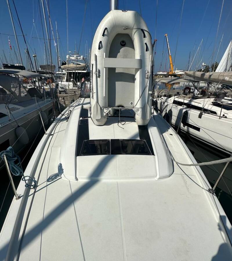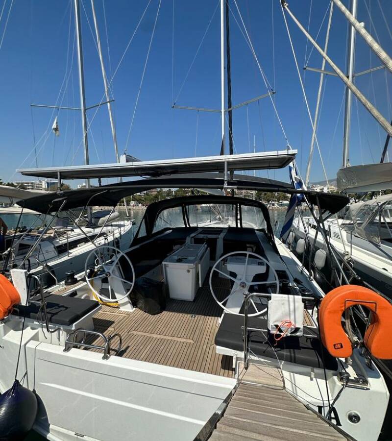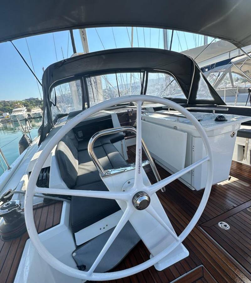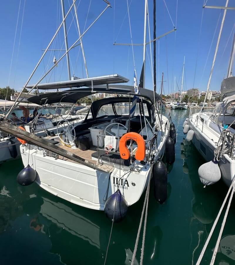 Die Oceanis 46.1 "Ilia" ist ausgestattet mit einem Großsegel und einem Genoa sowie einer Bimini Top, Autopilot, Sprayhood.