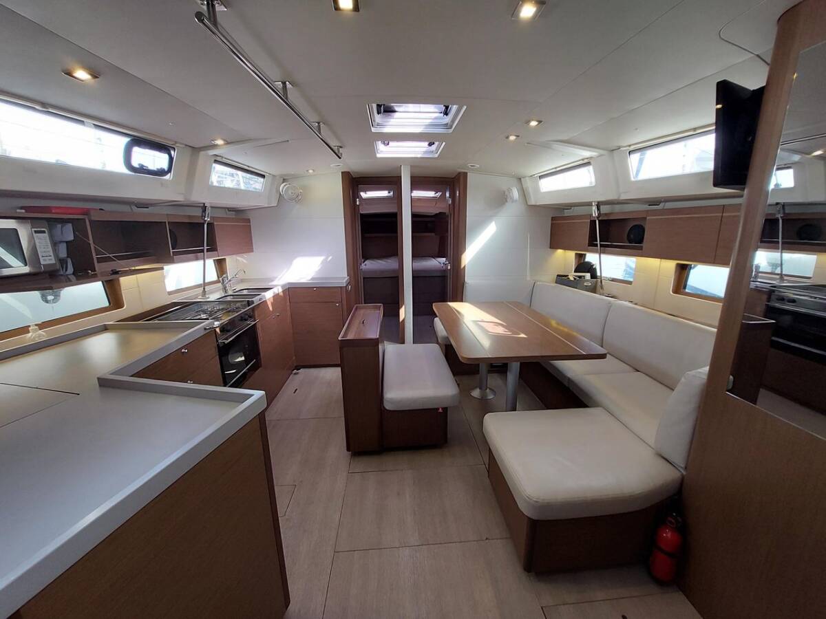Die Oceanis 46.1 "Kalmi" bietet besonderen Komfort mit folgenden Ausstattungsmerkmalen: Bugstrahlruder, Klimaanlage, Tiefkühlfach, Inverter, Solar Panel.