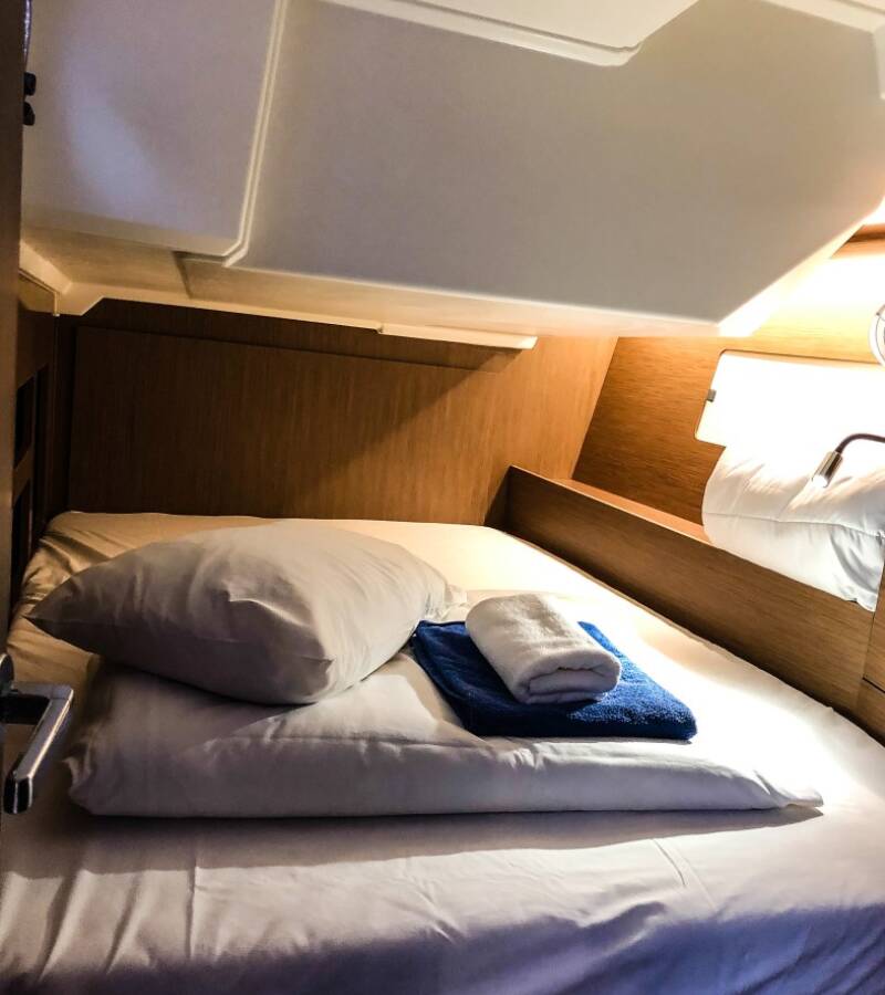 Die Oceanis 46.1 "Nemo" bietet besonderen Komfort mit folgenden Ausstattungsmerkmalen: Bugstrahlruder, Cockpit Kissen, Badeplattform, Solar Panel.