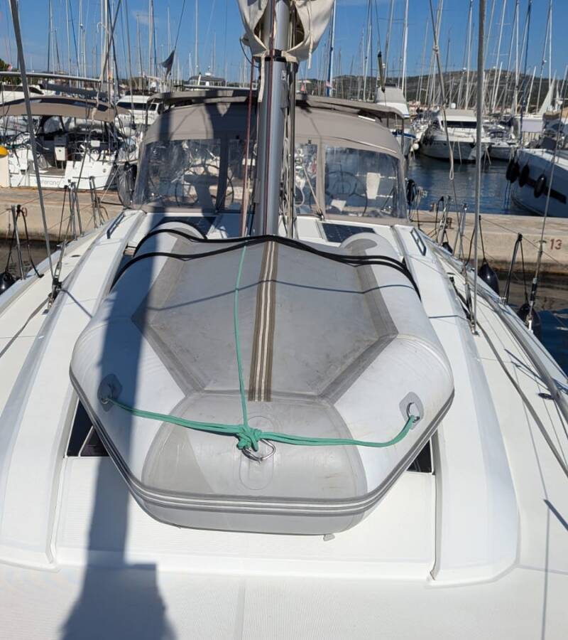 Die Oceanis 46.1 "Noah" ist ausgestattet mit einem Großsegel und einem Genoa sowie einer Bimini Top, Autopilot, Sprayhood, Heizung, Teak im Cockpit.