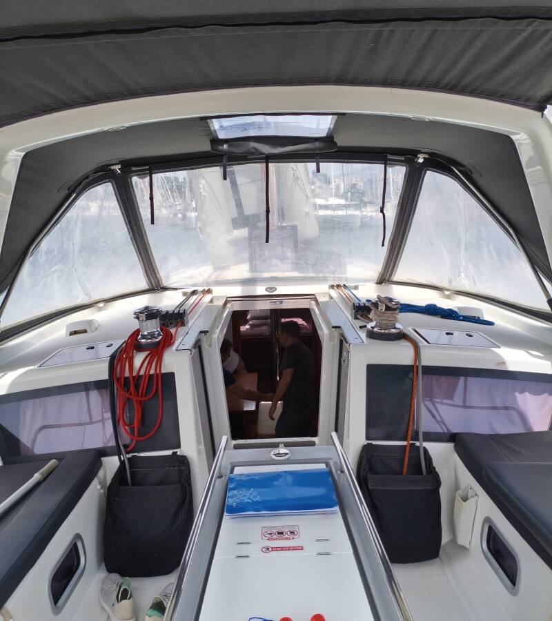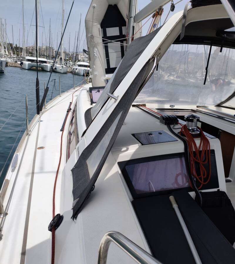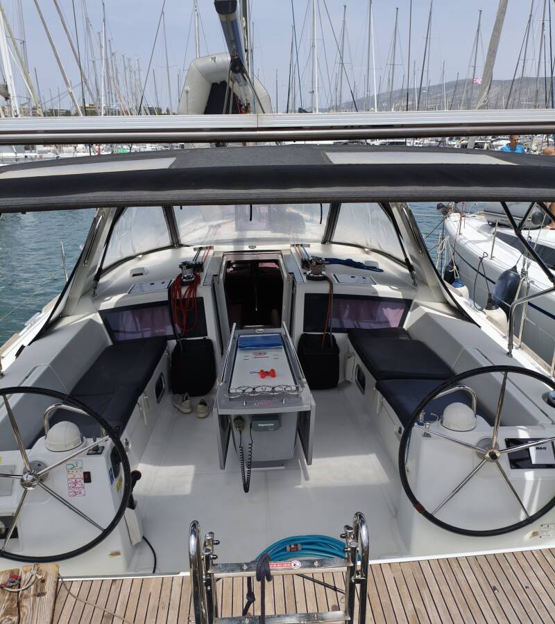 Die Oceanis 48 "Skiron" ist ausgestattet mit einem Großsegel und einem Genoa sowie einer Autopilot, GPS Kartenplotter - Cockpit.