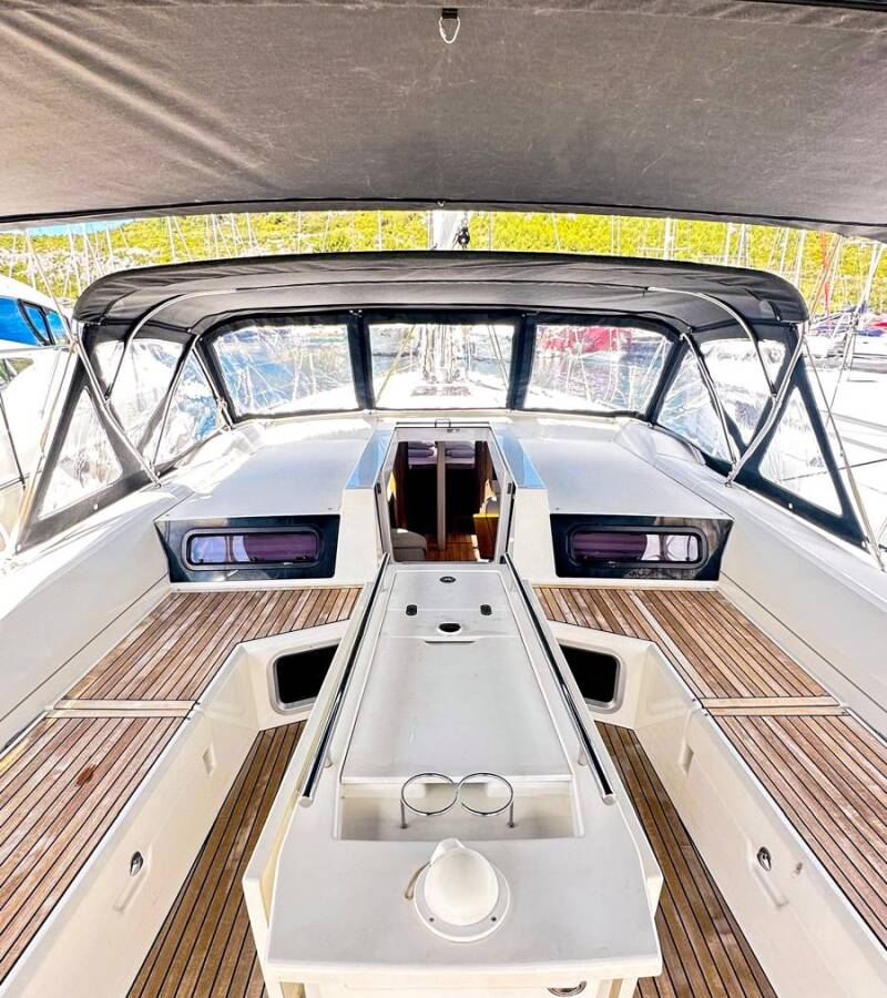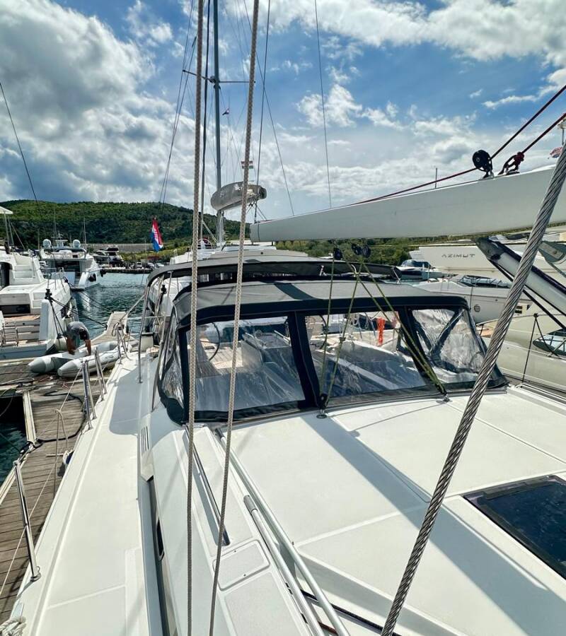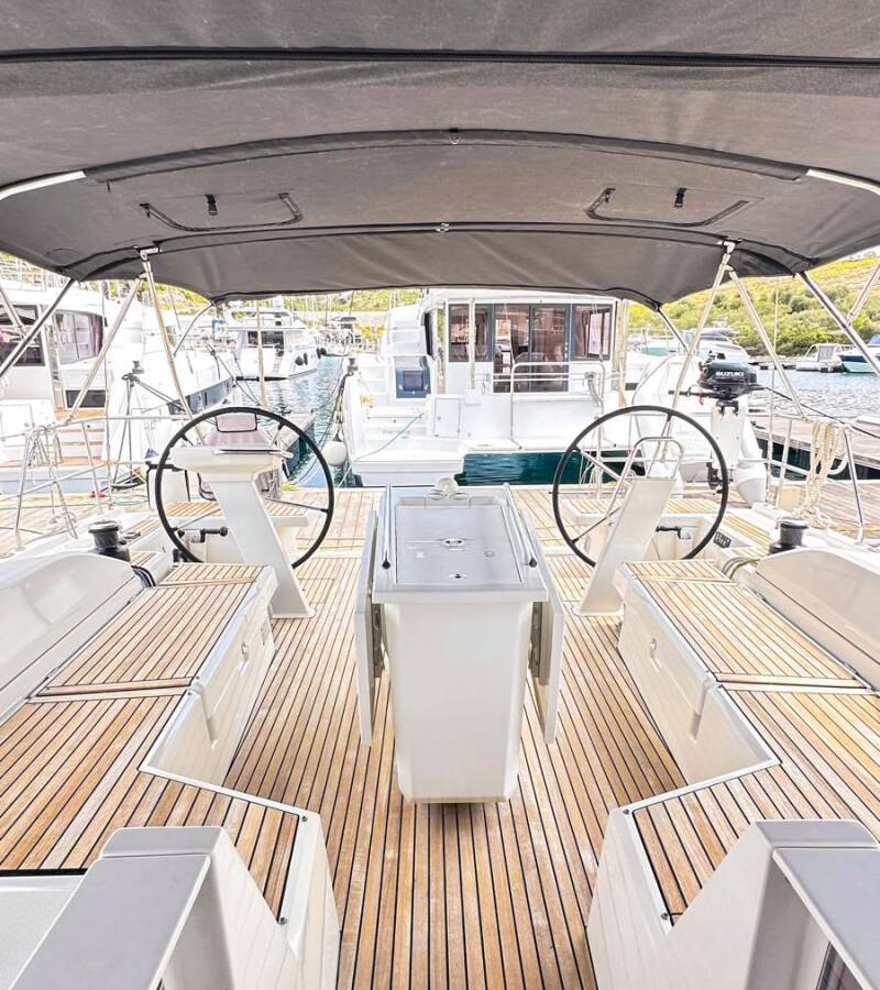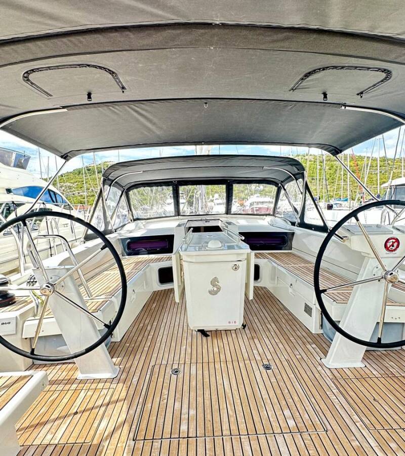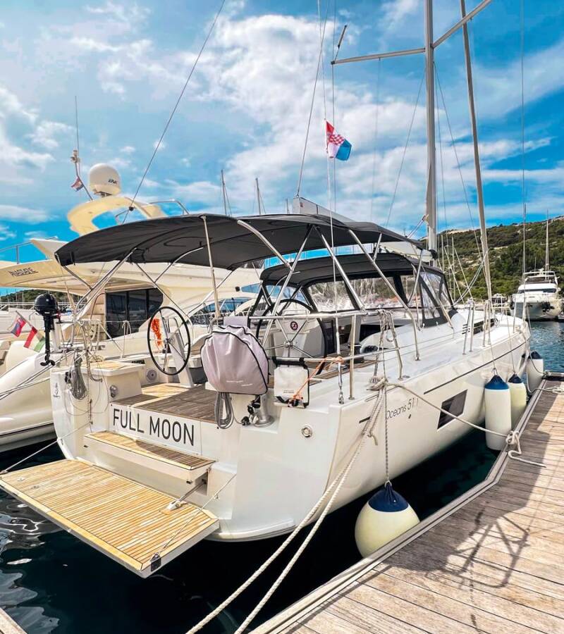Die Oceanis 51.1 "Full Moon" ist ausgestattet mit einem Großsegel und einem Genoa sowie einer Bimini Top, Autopilot, Sprayhood, Heizung, Teak im Cockpit, GPS Kartenplotter - Cockpit.