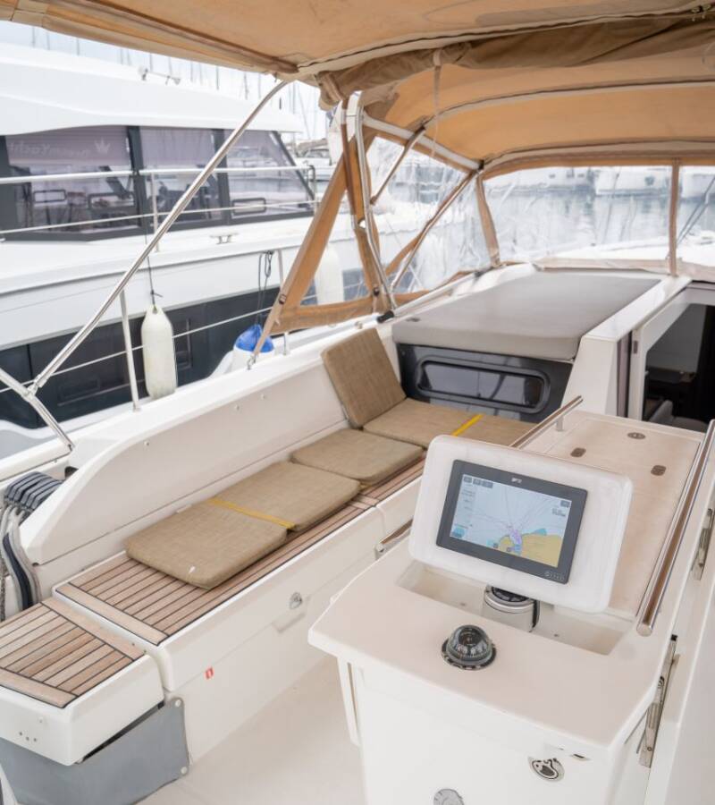 Die Oceanis 51.1 "IBERIS " ist ausgestattet mit einem Großsegel und einem Genoa sowie einer Bimini Top, Autopilot, Sprayhood, GPS Kartenplotter - Cockpit.
