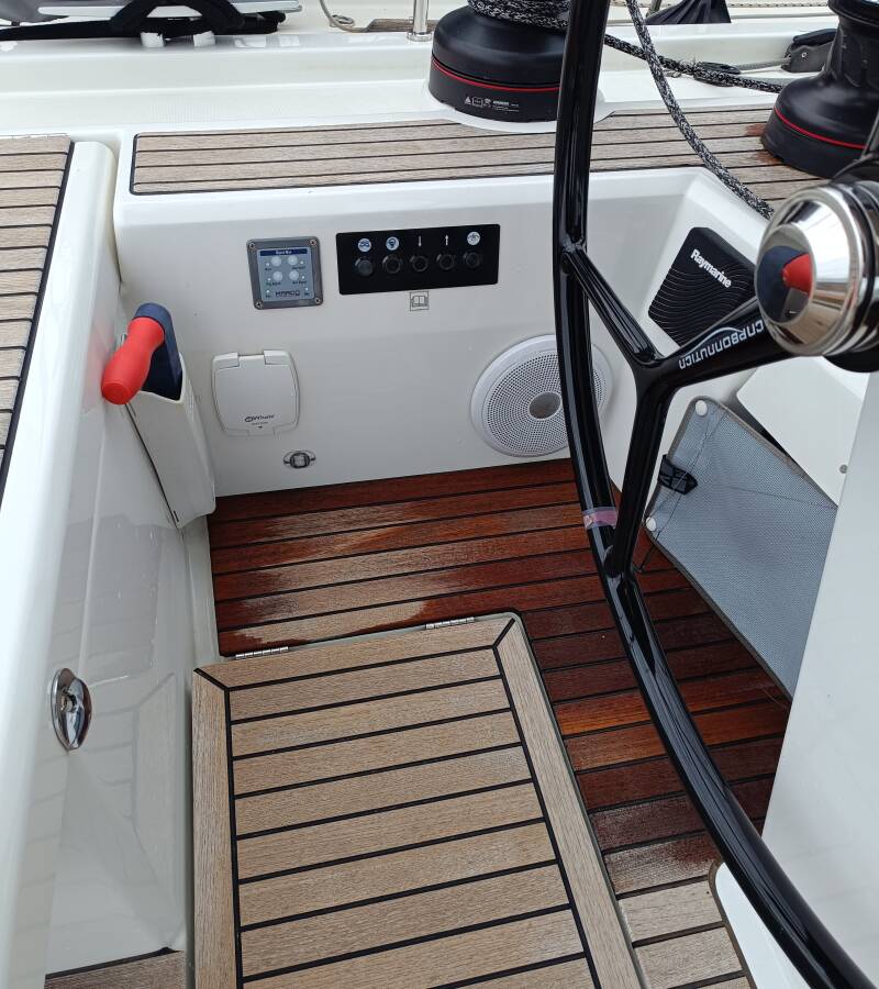 Die Oceanis 51.1 "Obelix" ist ausgestattet mit einem Großsegel und einem Genoa sowie einer Bimini Top, Autopilot, Sprayhood, Heizung, Teak im Cockpit, GPS Kartenplotter - Cockpit.