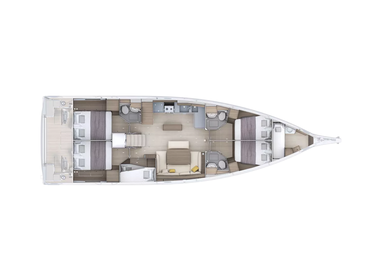 Die Segelyacht Oceanis 52 "Ayca", Baujahr 2026, liegt in Port of Kos - Griechenland . Die Yacht verfügt über 5 + 1 Kabinen, bietet Platz für 10 + 2 Personen und hat 3 + 1 Toiletten/Duschen.