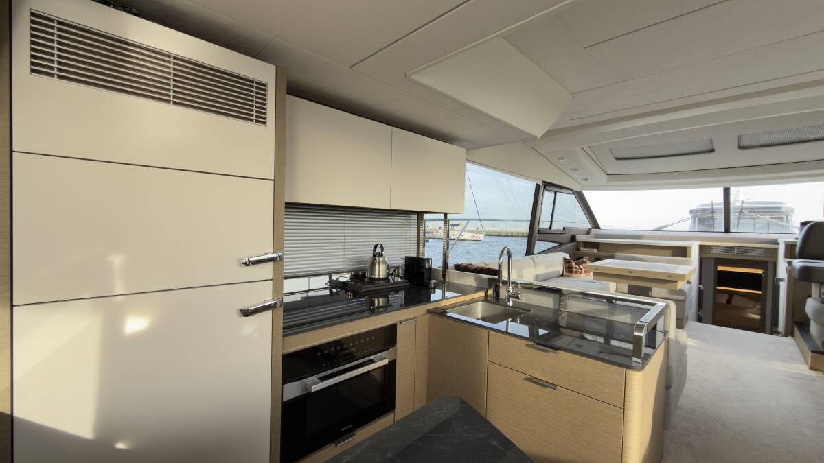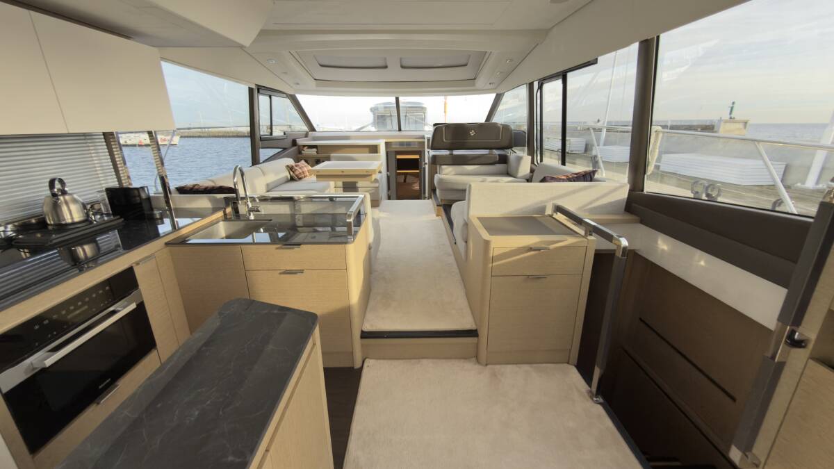 Die Prestige 590 Flybridge "Dzianiny.Club 2" ist ausgestattet mit einer Radar, Autopilot, GPS Kartenplotter - Cockpit.