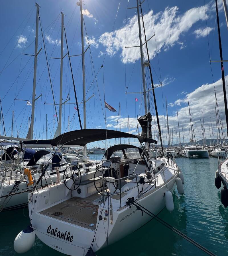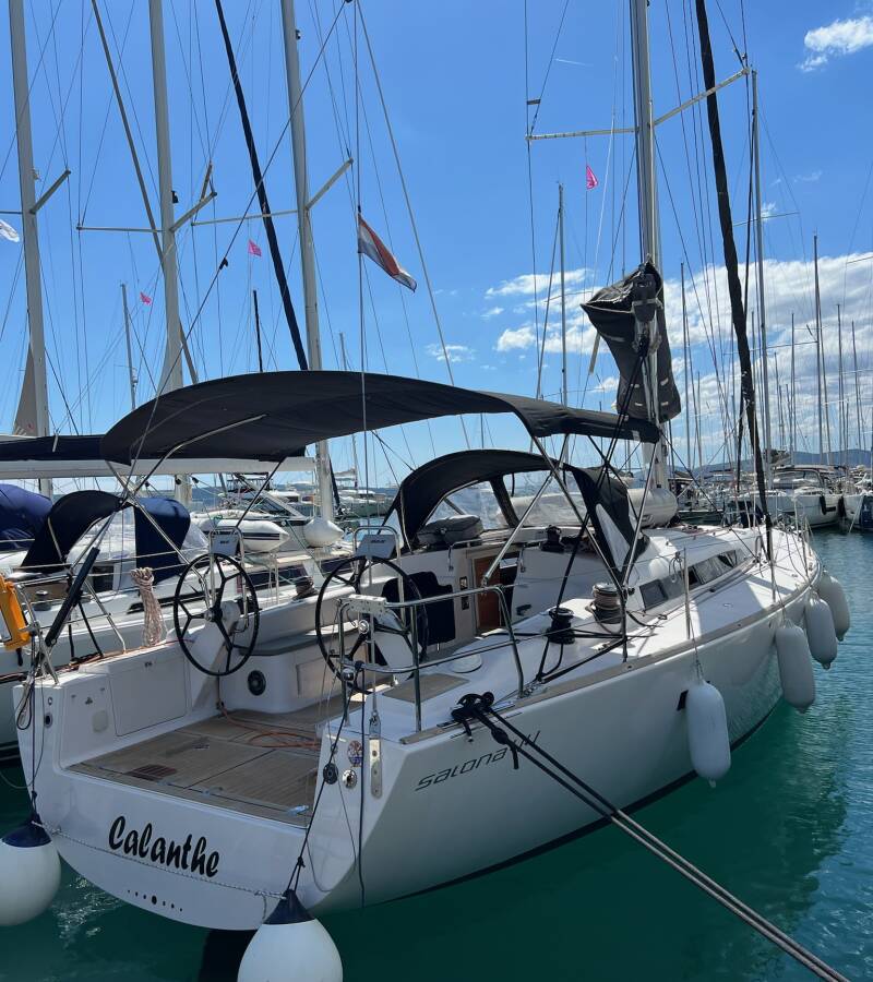 Die Salona 44 "Calanthe" bietet besonderen Komfort mit folgenden Ausstattungsmerkmalen: Bugstrahlruder, Cockpit Kissen, Inverter.